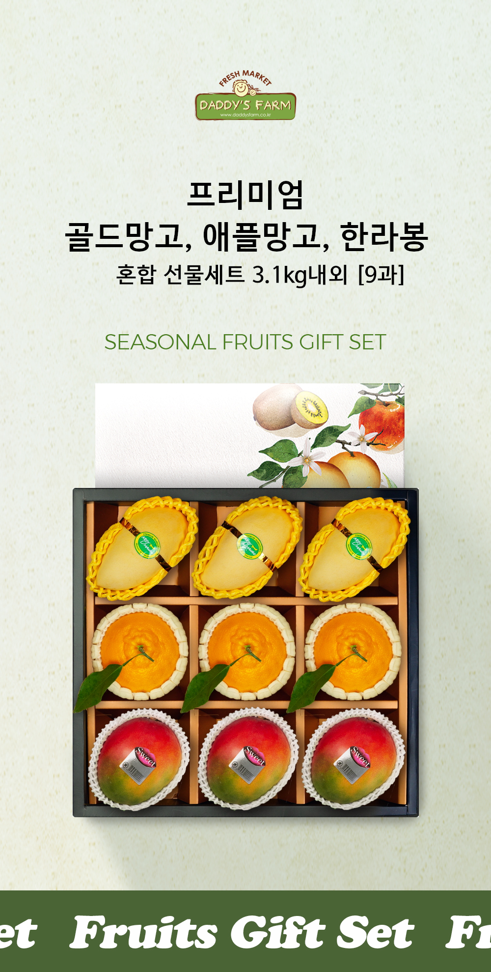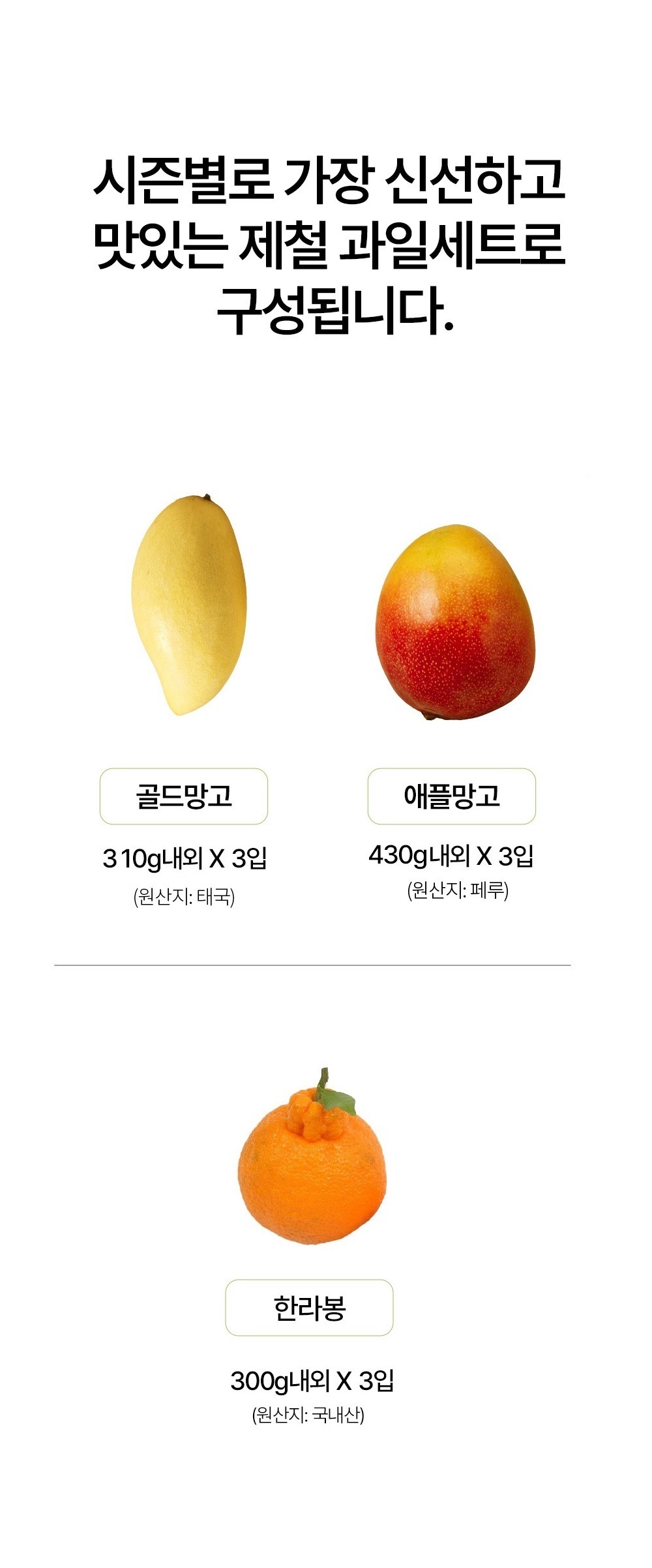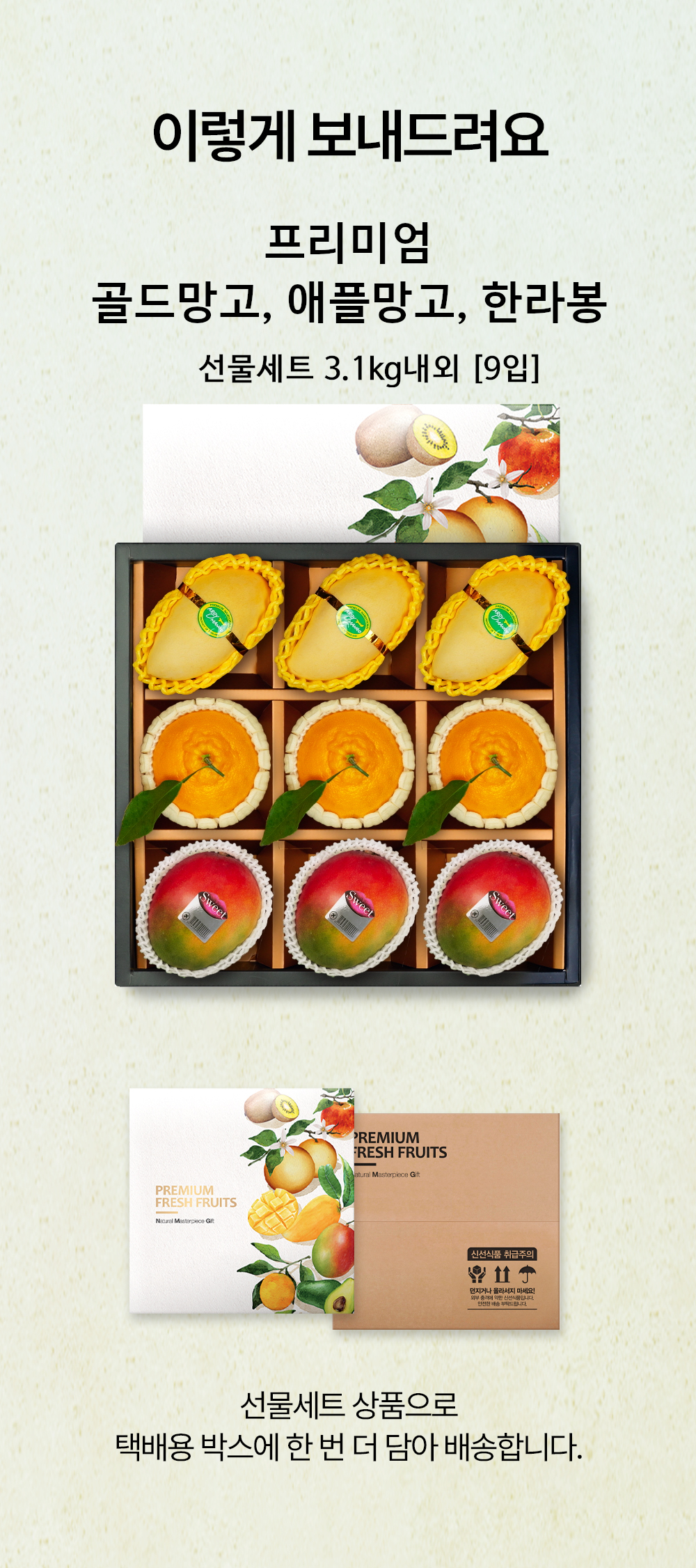 | 판매단위 | 3.1kg내외(골드망고 3입, 애플망고 3입, 한라봉 3입) |