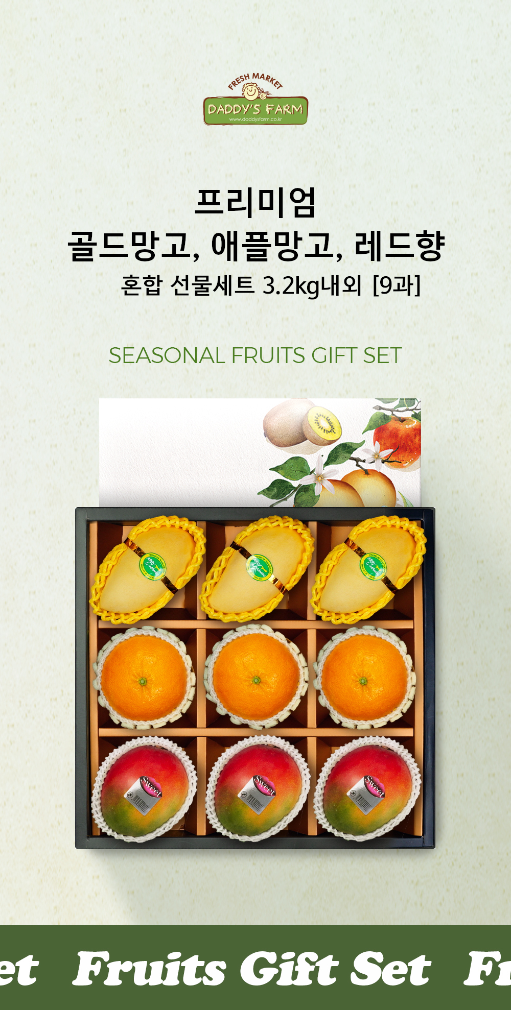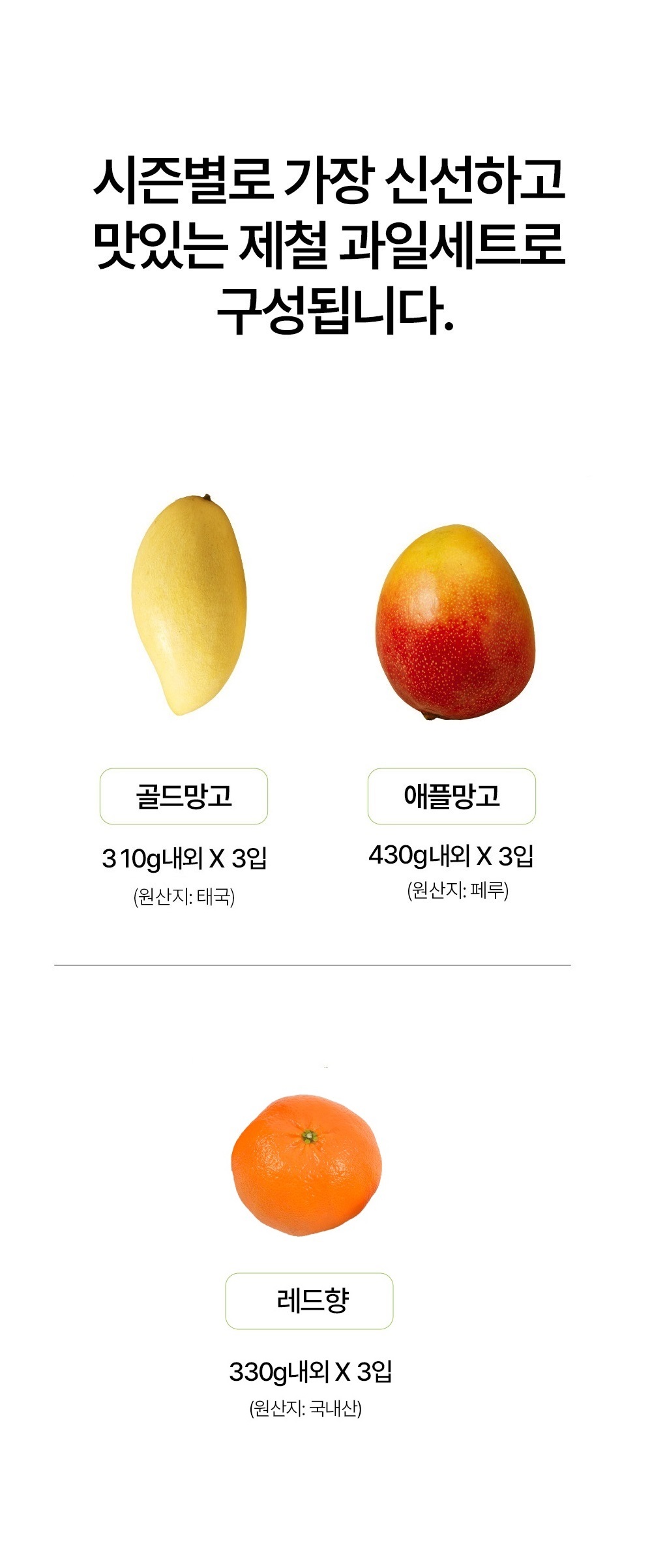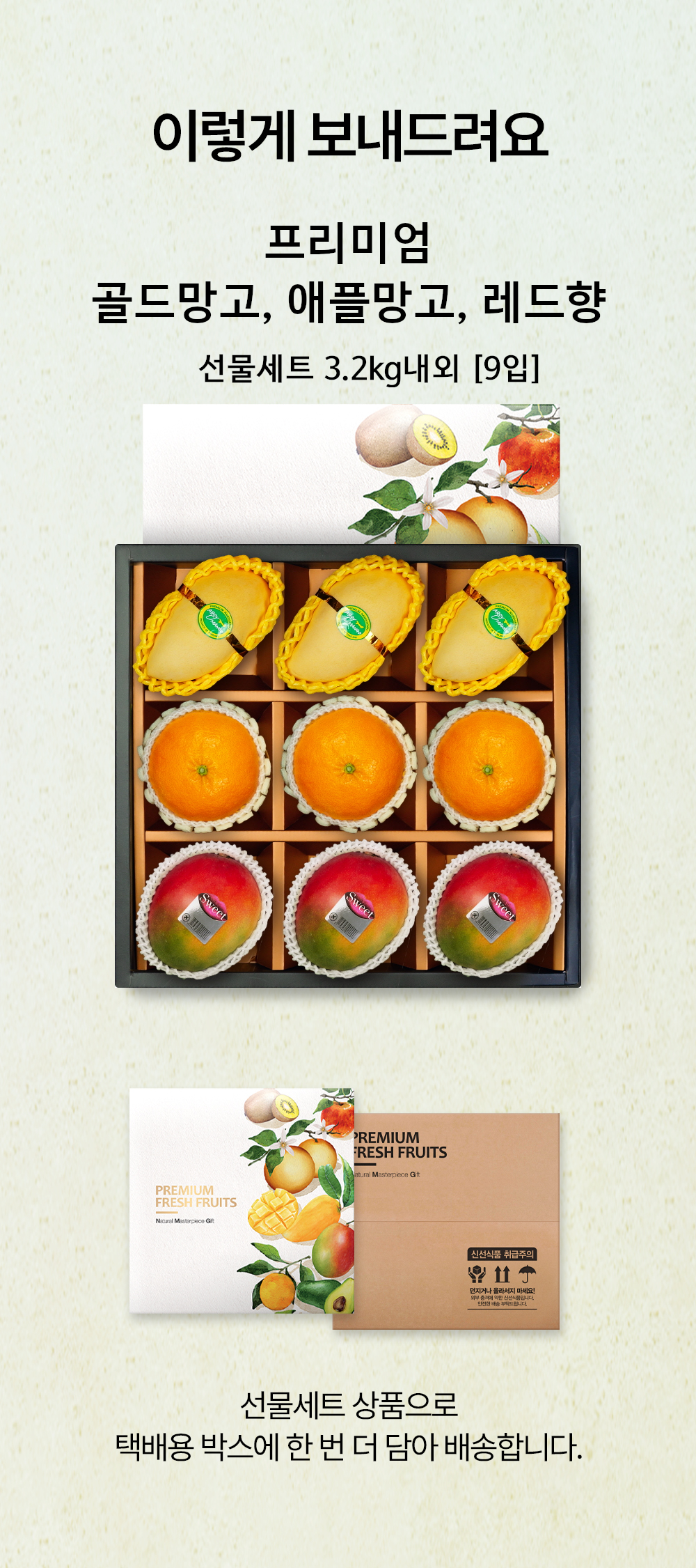 | 판매단위 | 3.2kg내외(골드망고 3입, 애플망고 3입, 레드향 3입) |