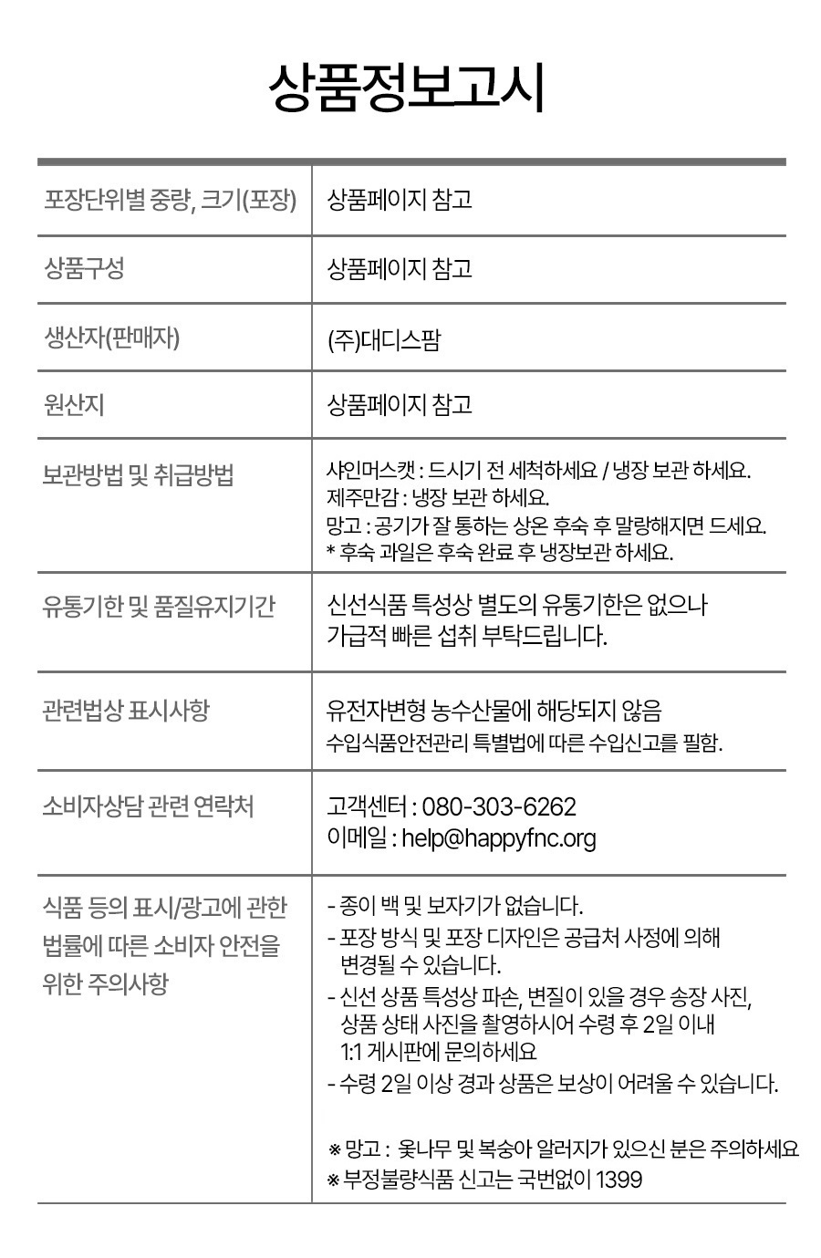 · 주의사항 - 일요일, 법정공휴일은 배송(도착)하지 않습니다. (명절 및 특수시즌 제외) - 배송지 정보와 받으시는 분의 장소 및 연락처가 불분명할 경우에는 배송이 지연될 수 있으며, 그로 인한 상품 변질에 대해서는 자연이랑이 책임지지 않습니다. |