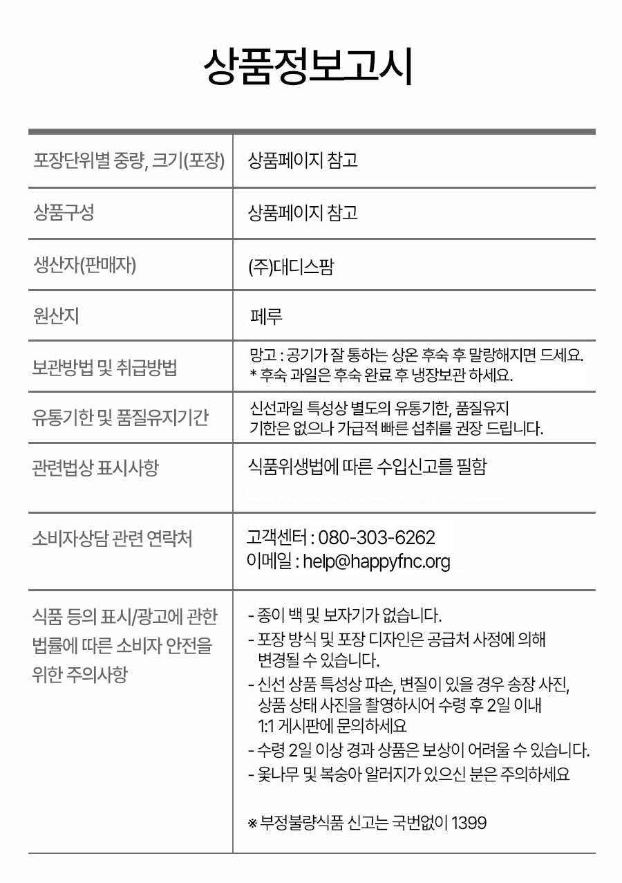 · 주의사항 - 일요일, 법정공휴일은 배송(도착)하지 않습니다. (명절 및 특수시즌 제외) - 배송지 정보와 받으시는 분의 장소 및 연락처가 불분명할 경우에는 배송이 지연될 수 있으며, 그로 인한 상품 변질에 대해서는 자연이랑이 책임지지 않습니다. |