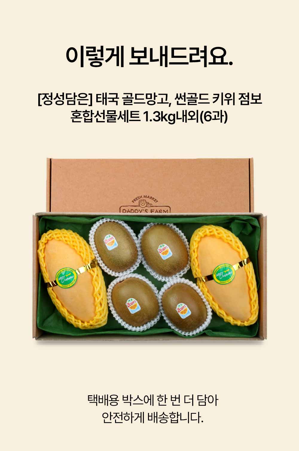 [정성담은] 태국 골드망고&썬골드 키위 점보 혼합선물세트 1.3kg(6과)