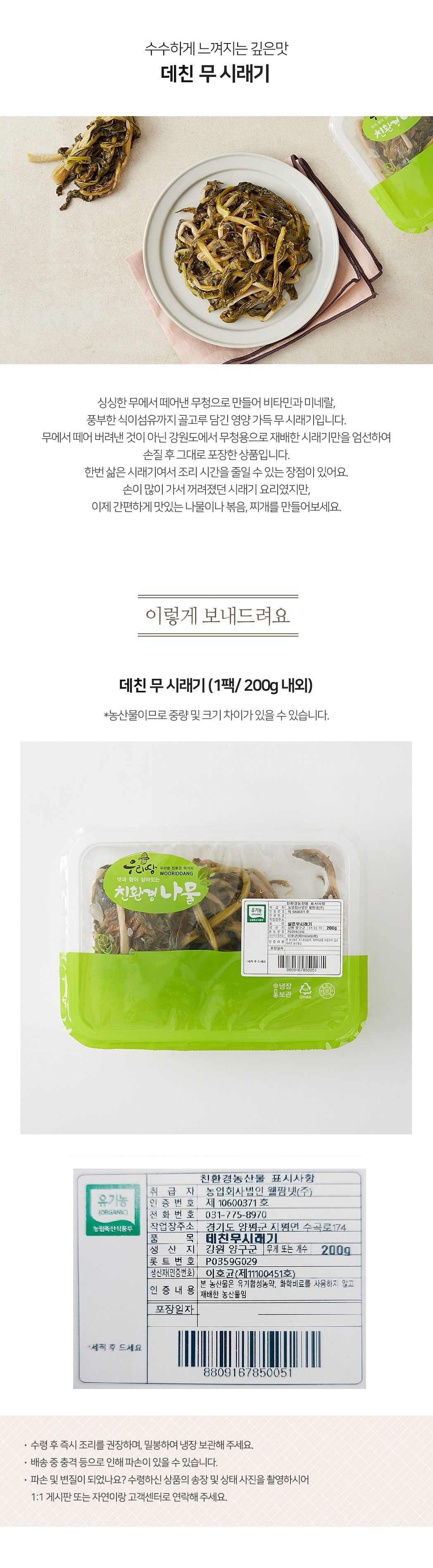 친환경 데친 무시래기 200g