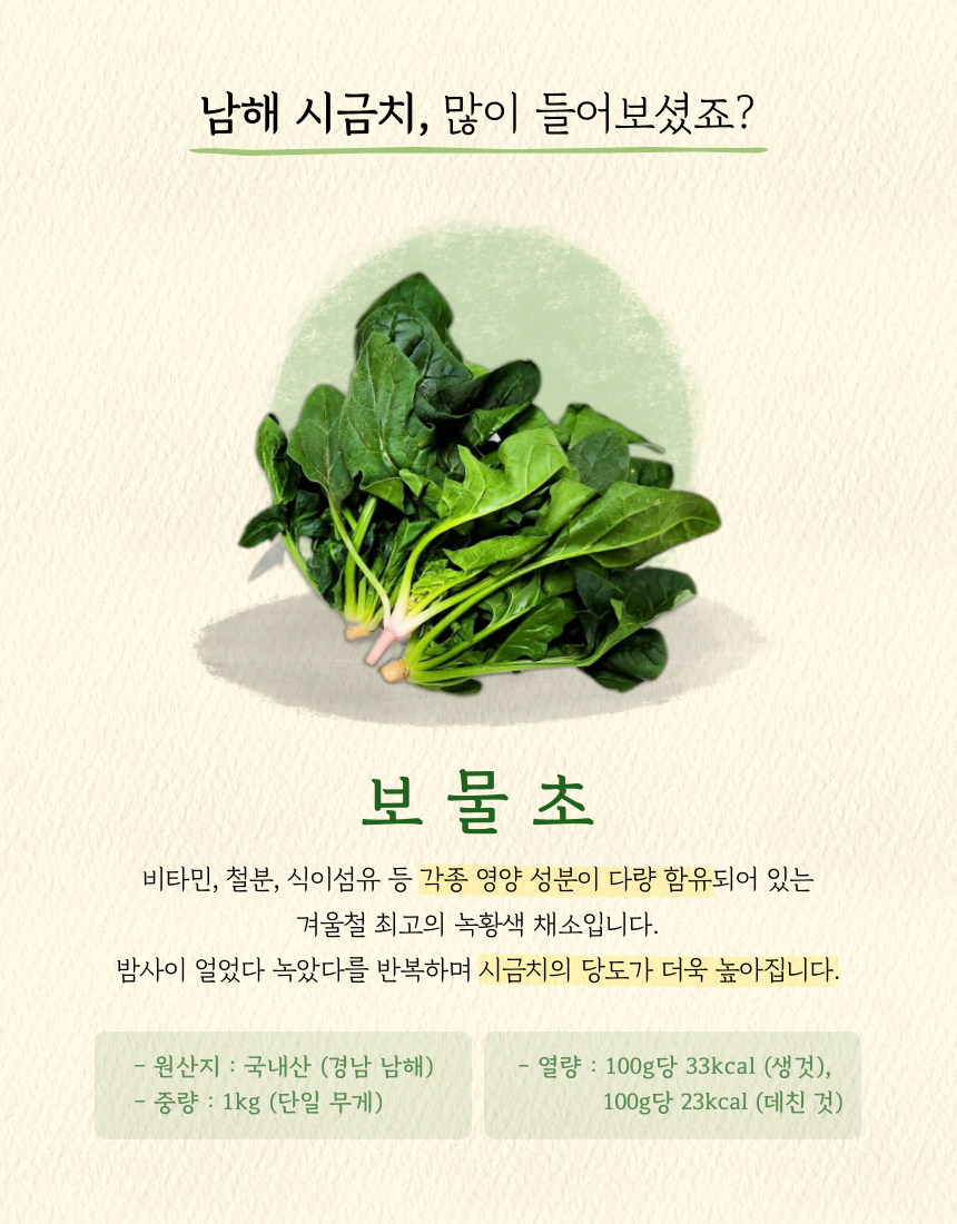 품목또는명칭 [세척] 남해 보물초(시금치) 1kg