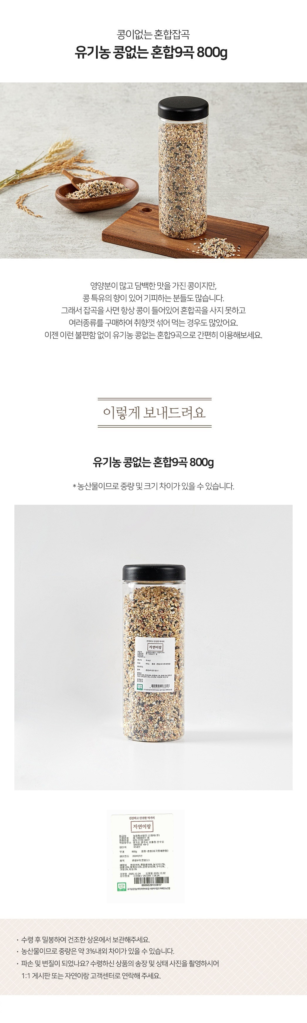 유기농 콩없는 혼합9곡 800g