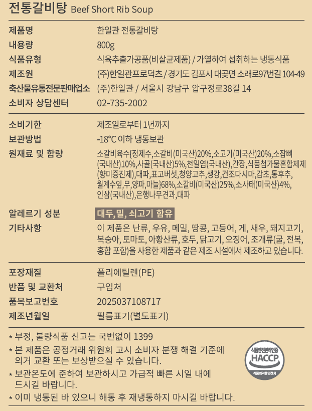 | 판매단위 | 순살갈비 400×2팩, 꿀불고기500g, 전통갈비탕800g×2팩, 전통육개장800g |