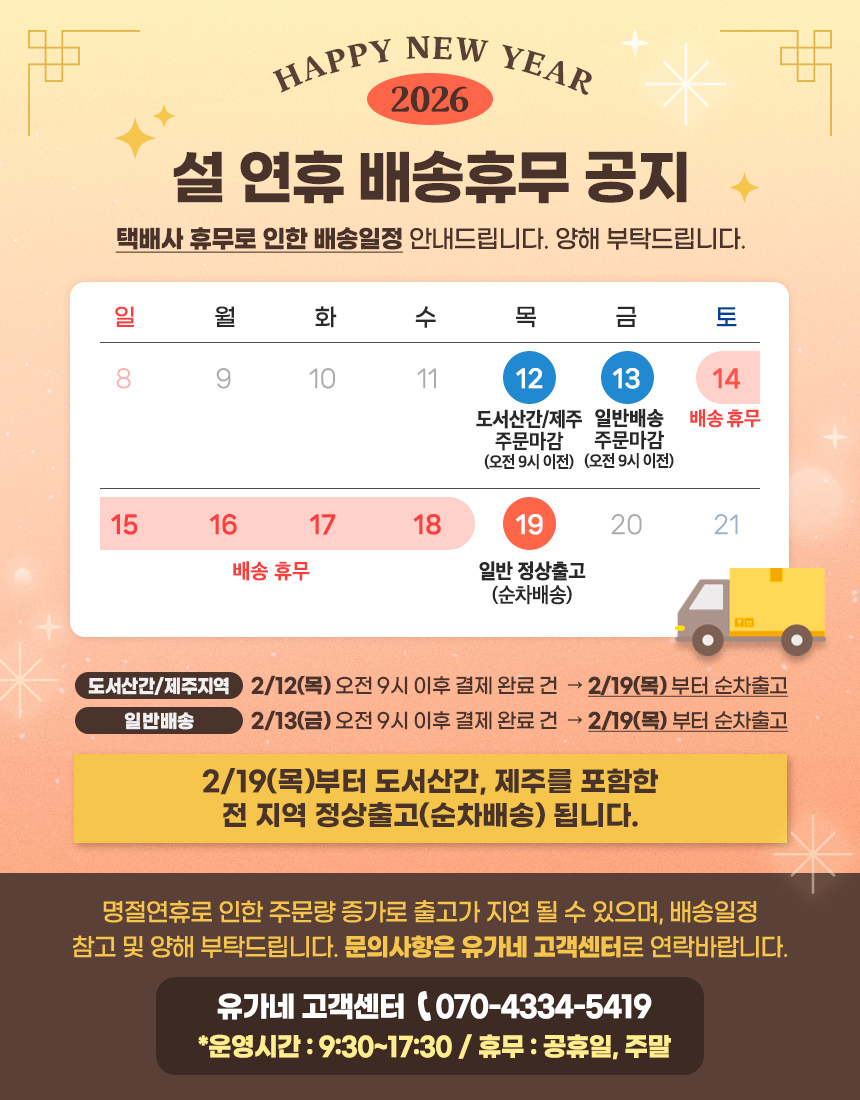 · 공휴일 전날은 출고 불가하며 당일 출고건은 다음날 배송됩니다.