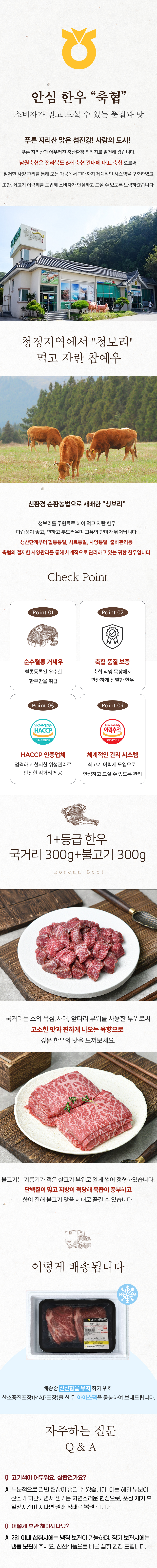 [기획특가][축협] 1+등급 한우 국거리300g+불고기 300g(급냉)