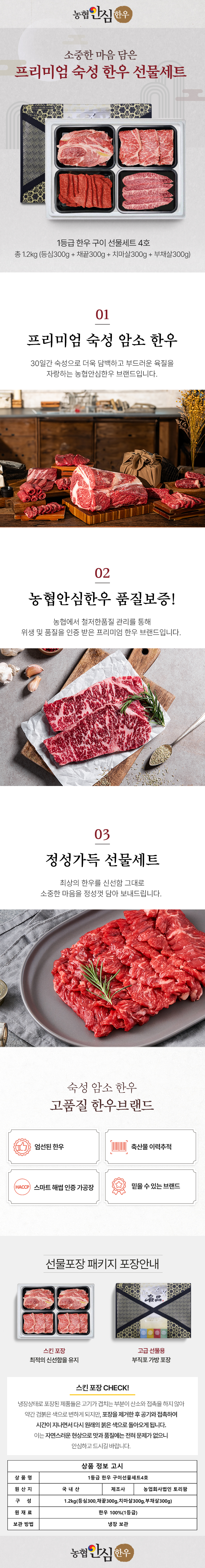 | 판매단위 | 1.2kg내외(등심300,채끝300g,치마살300g,부채살300g) |