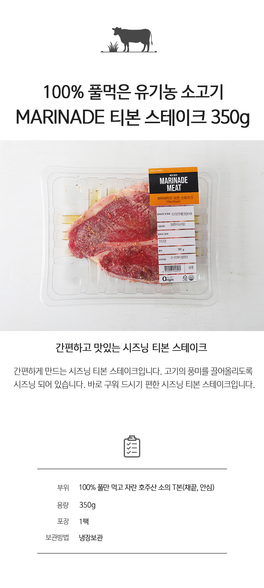 [호주목초우] 시즈닝 T본 스테이크 360g