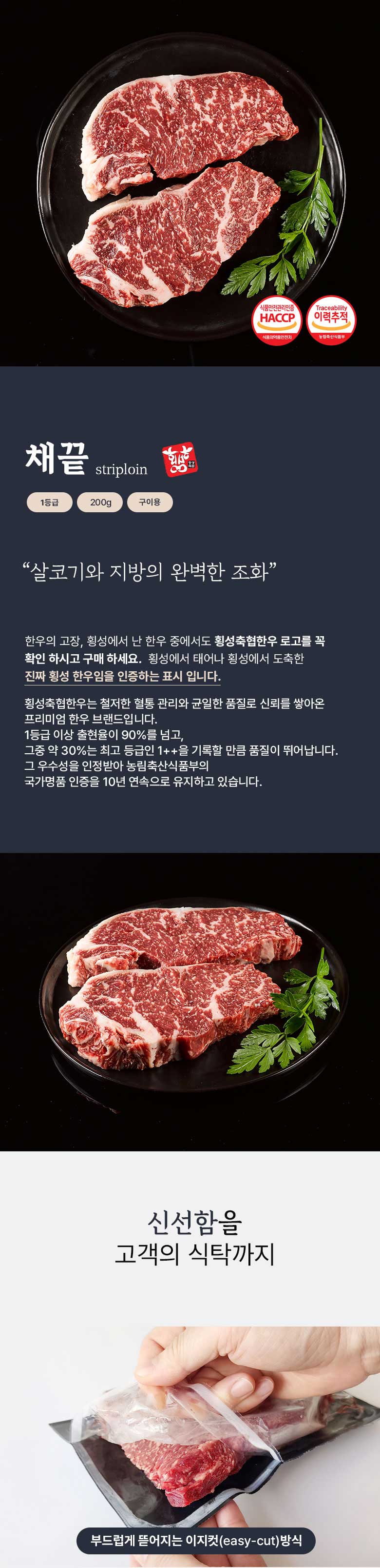 [횡성축협] 1등급 한우 채끝 200g
