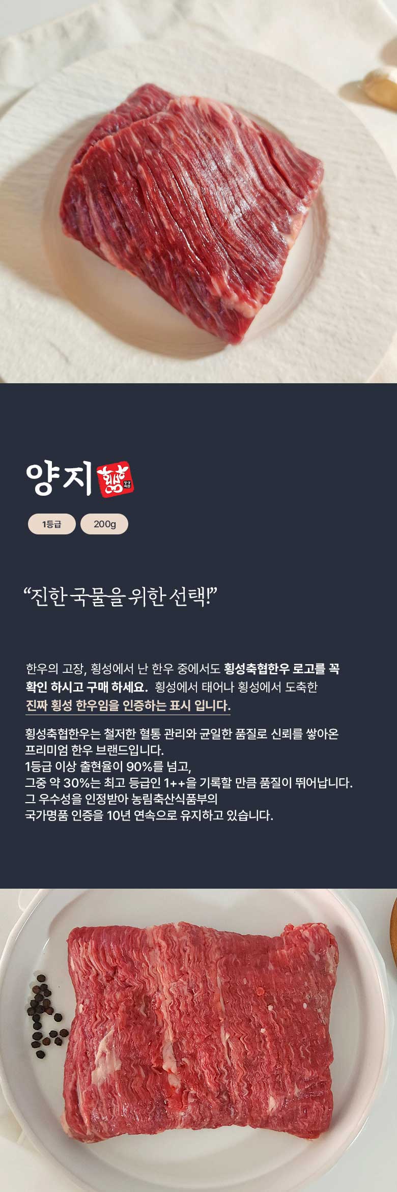 [횡성축협] 1등급 한우 양지 200g