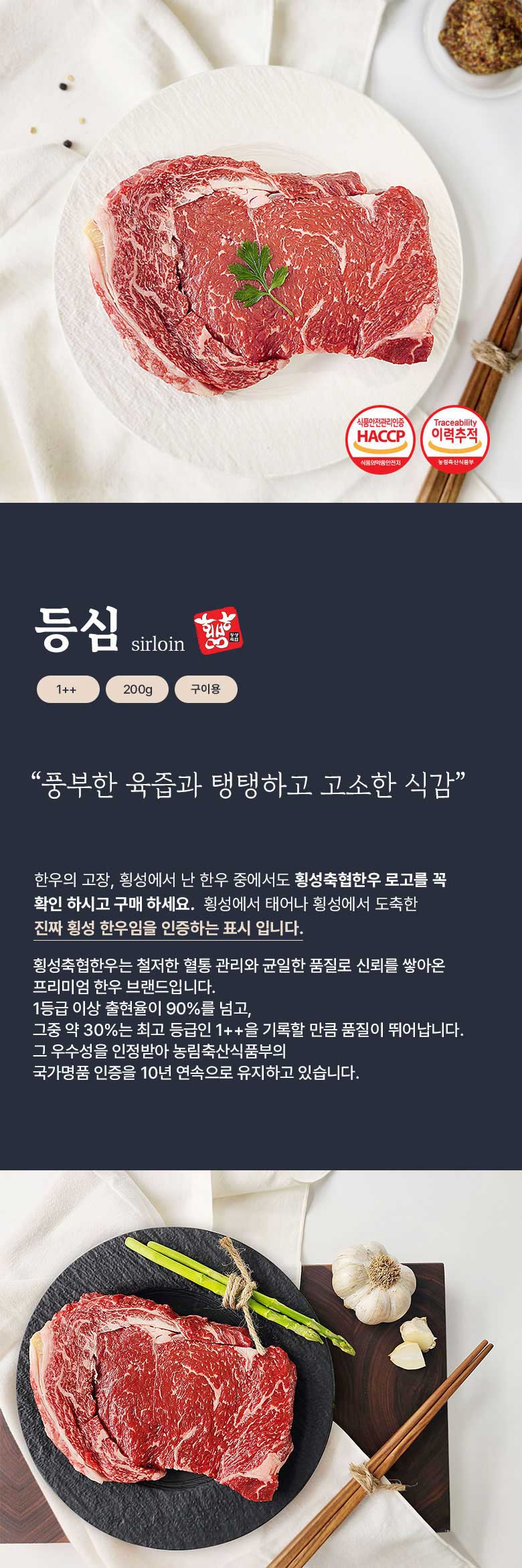 [횡성축협] 1++한우 투쁠 등심 200g