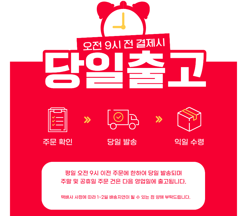 평일 오전 9시까지 주문하면 당일 발송