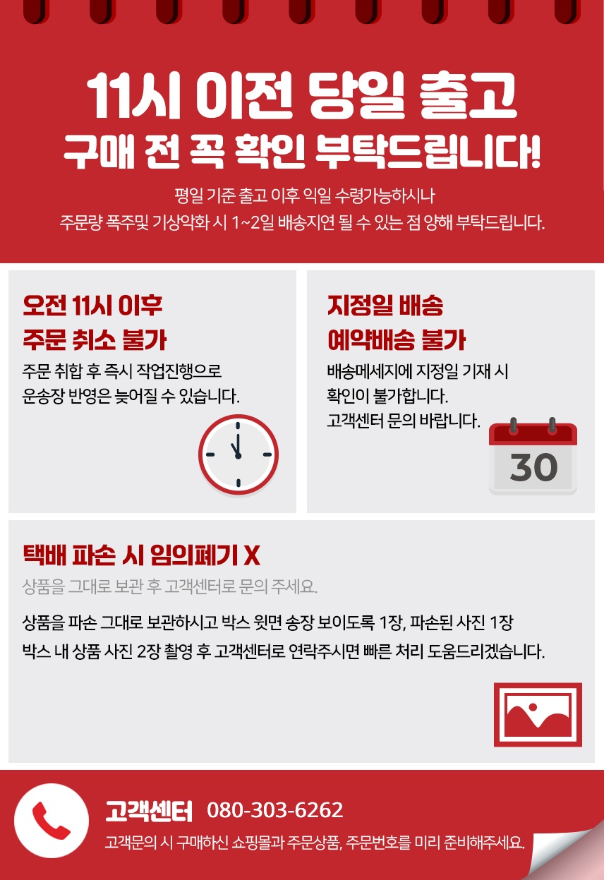· 공휴일 전날은 출고 불가하며 당일 출고건은 다음날 배송됩니다.