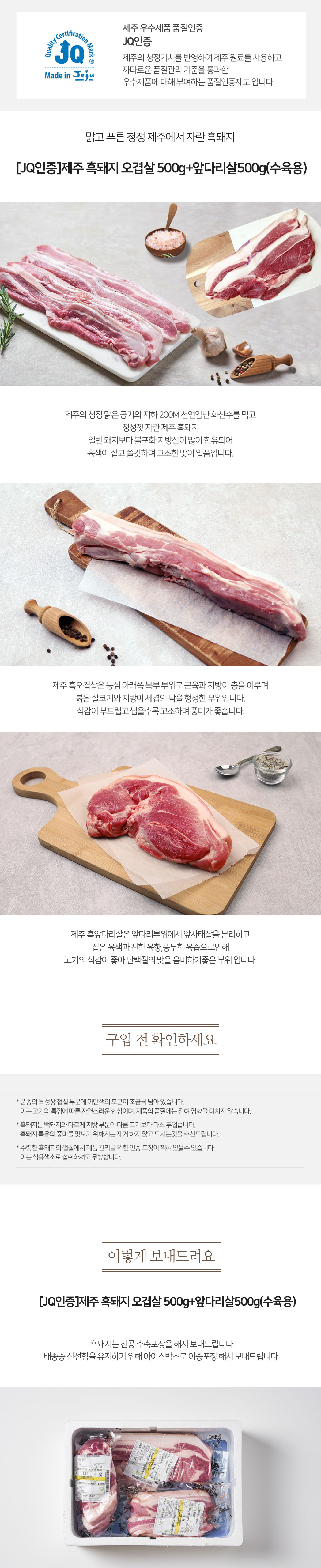 [기획] JQ인증 제주 흑돼지 오겹살500g+앞다리살500g(수육용)