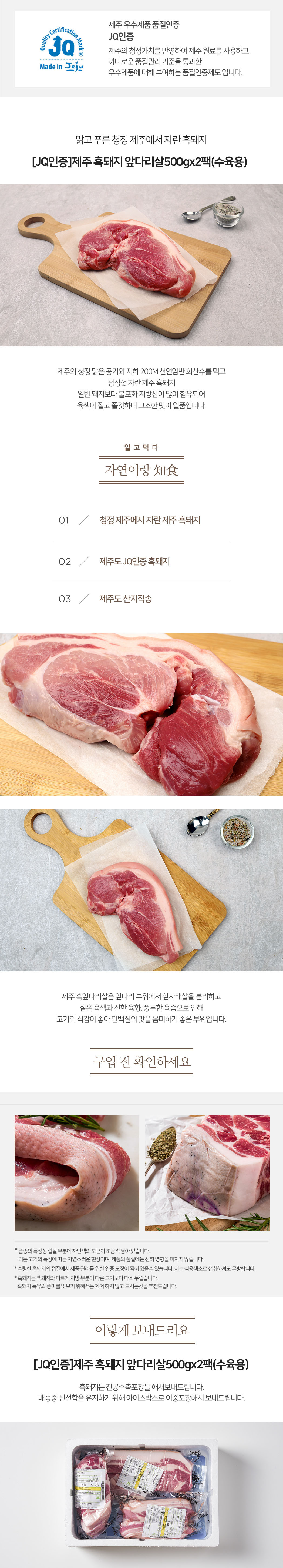 [기획] JQ인증 제주 흑돼지 앞다리살 500gx2팩(수육용)