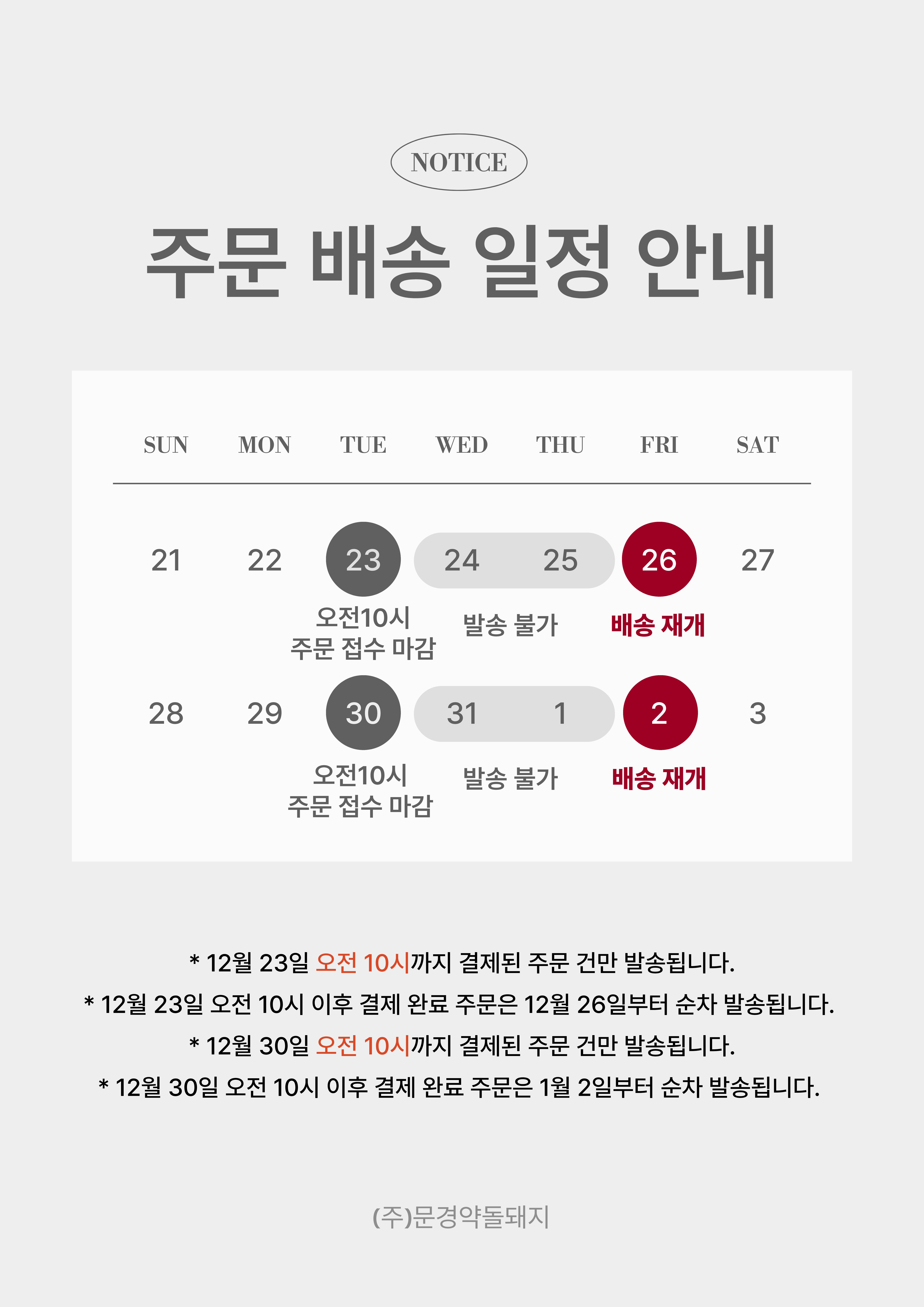 · 공휴일 전날은 출고 불가하며 당일 출고건은 다음날 배송됩니다.