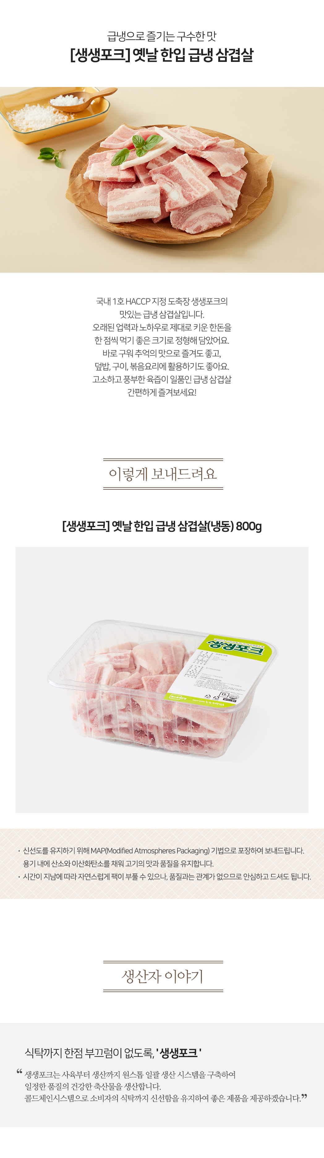 [생생포크] 급냉 한입 삼겹살 800g(냉동)