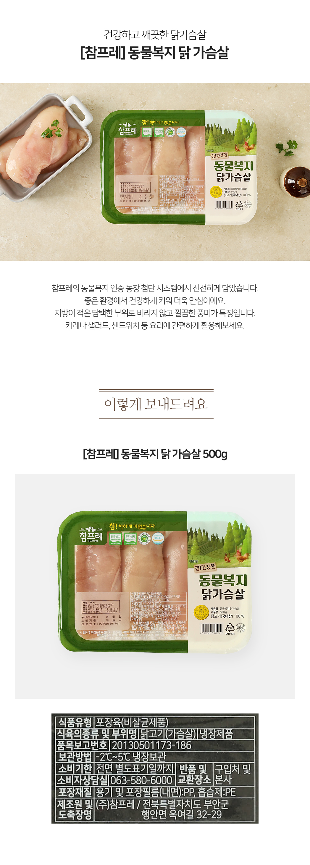 [참프레] 동물복지 닭 가슴살 500g(냉장)