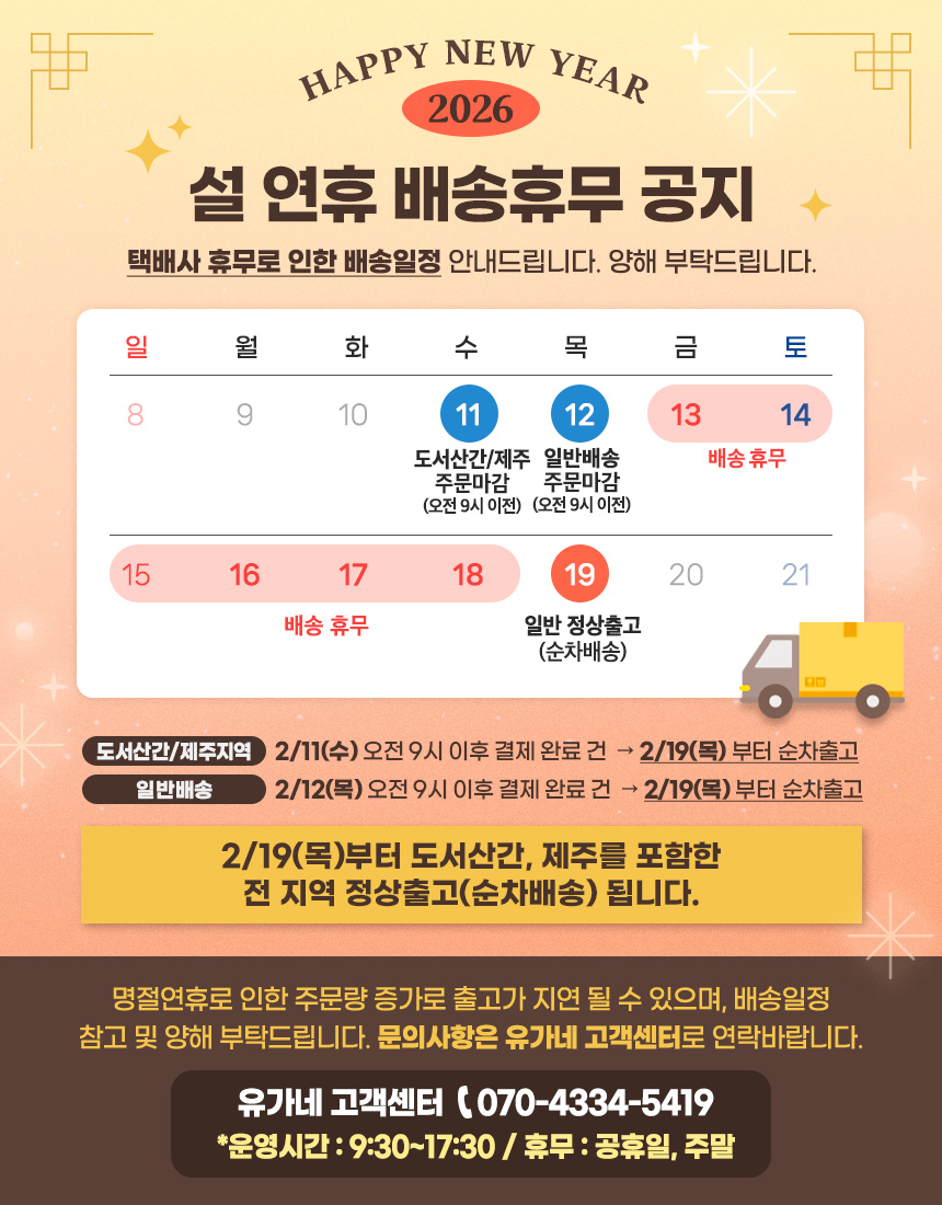 · 공휴일 전날은 출고 불가하며 당일 출고건은 다음날 배송됩니다.
