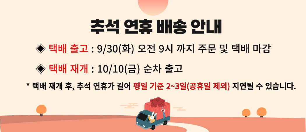 · 공휴일 전날은 출고 불가하며 당일 출고건은 다음날 배송됩니다.