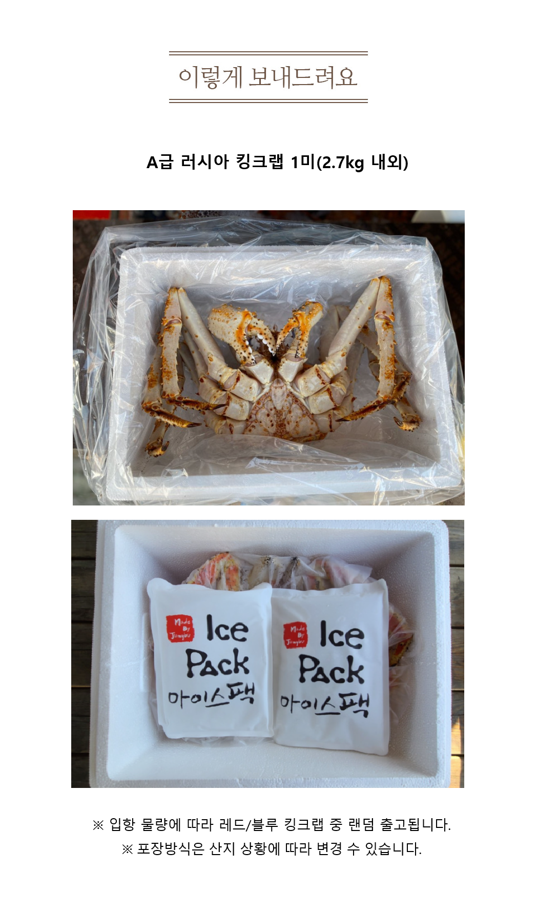 [12/23수령] (생물)A급 러시아 킹크랩 1미(2.7kg내외)