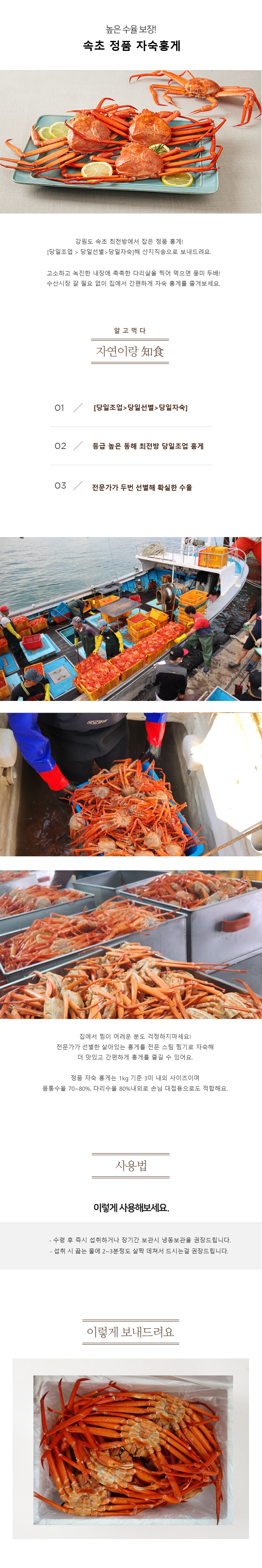 <상품안내> 활 홍게를 스팀에 바로 찌는 과정에서 간혹 홍게 다리가 떨어질 수 있습니다. 선도에는 문제가 없으니 구매 시 참고부탁드립니다. ![]() ![]()