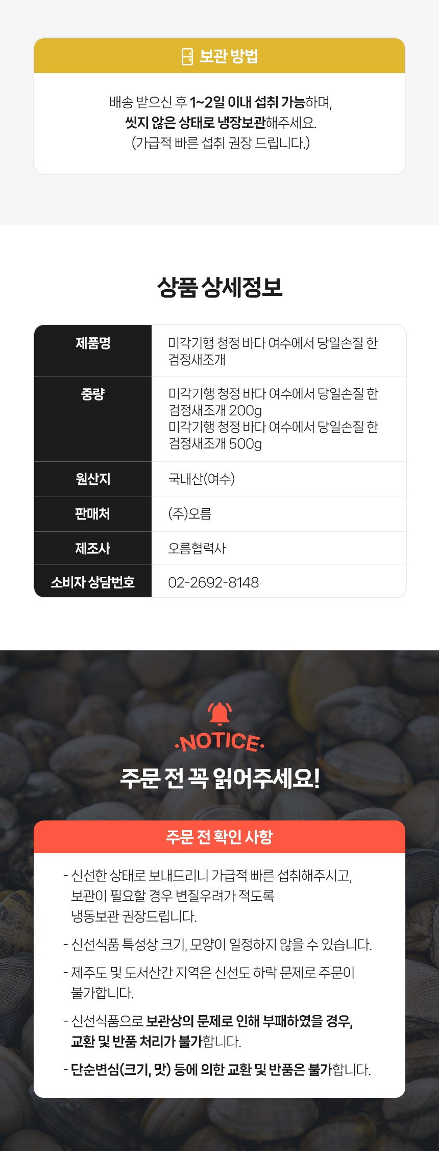 여수 당일 손질 검정 새조개 옵션 택1(200g/500g)