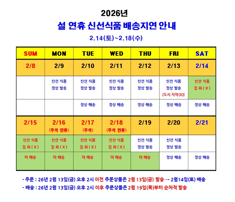 · 공휴일 전날은 출고 불가하며 당일 출고건은 다음날 배송됩니다.