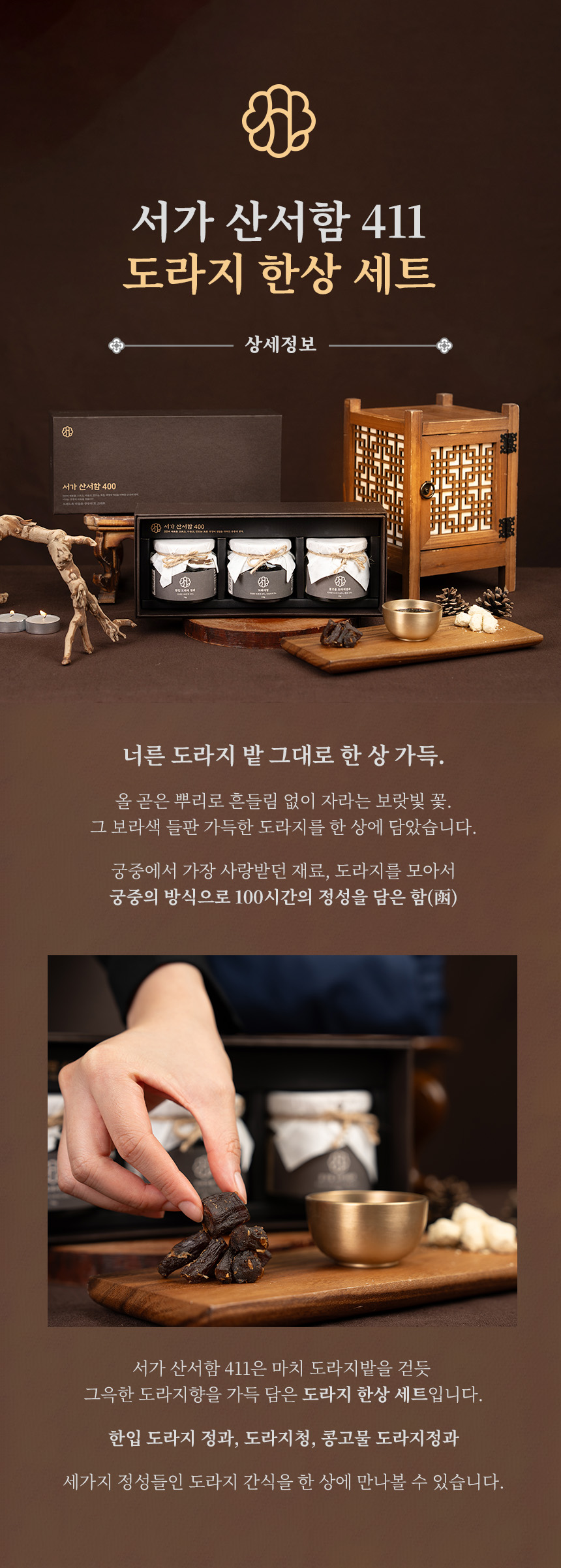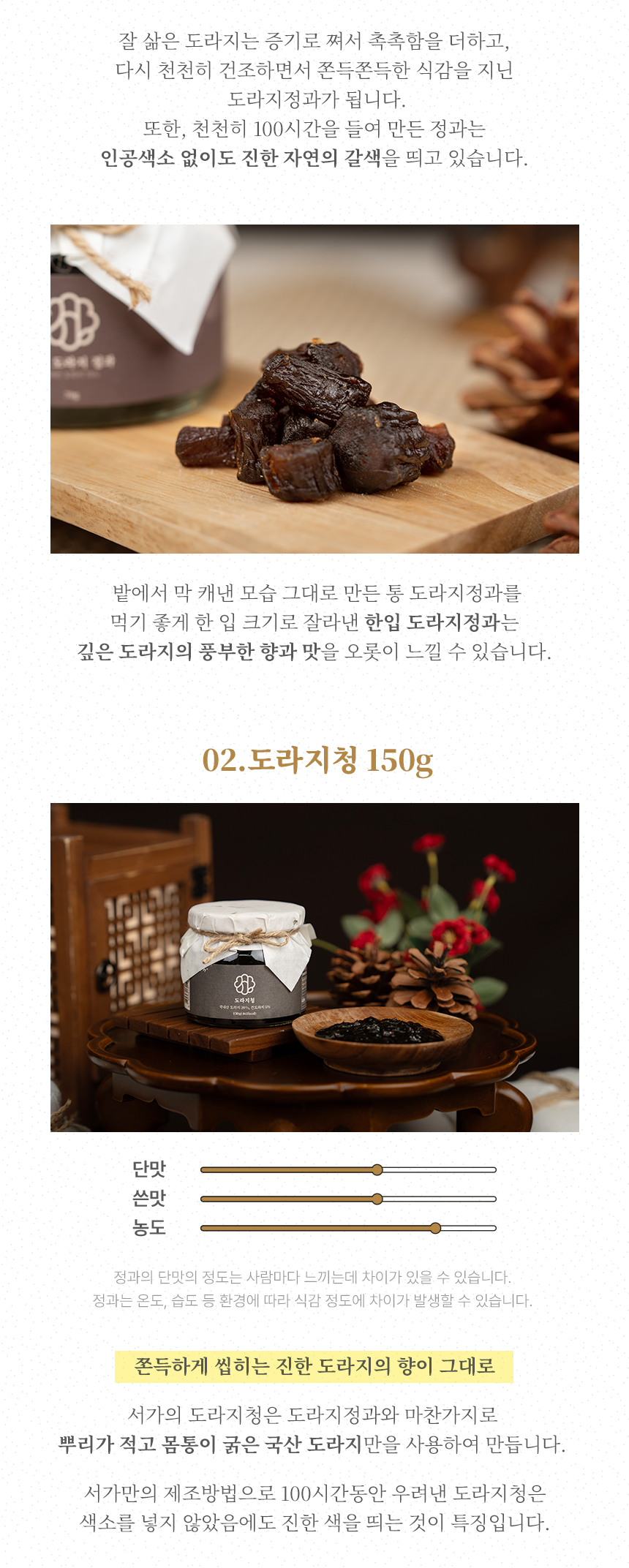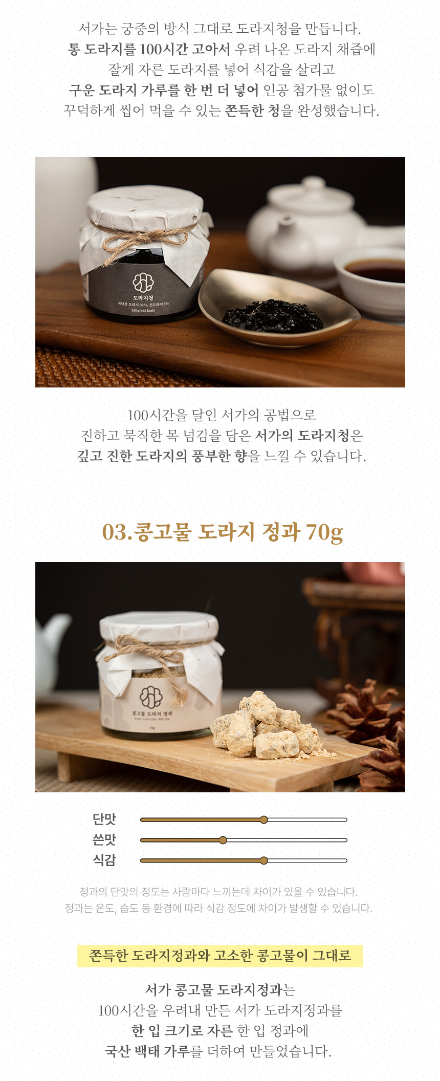 판매단위 | 한입 도라지정과 70g + 도라지청 150g + 콩고물 도라지정과 70g |