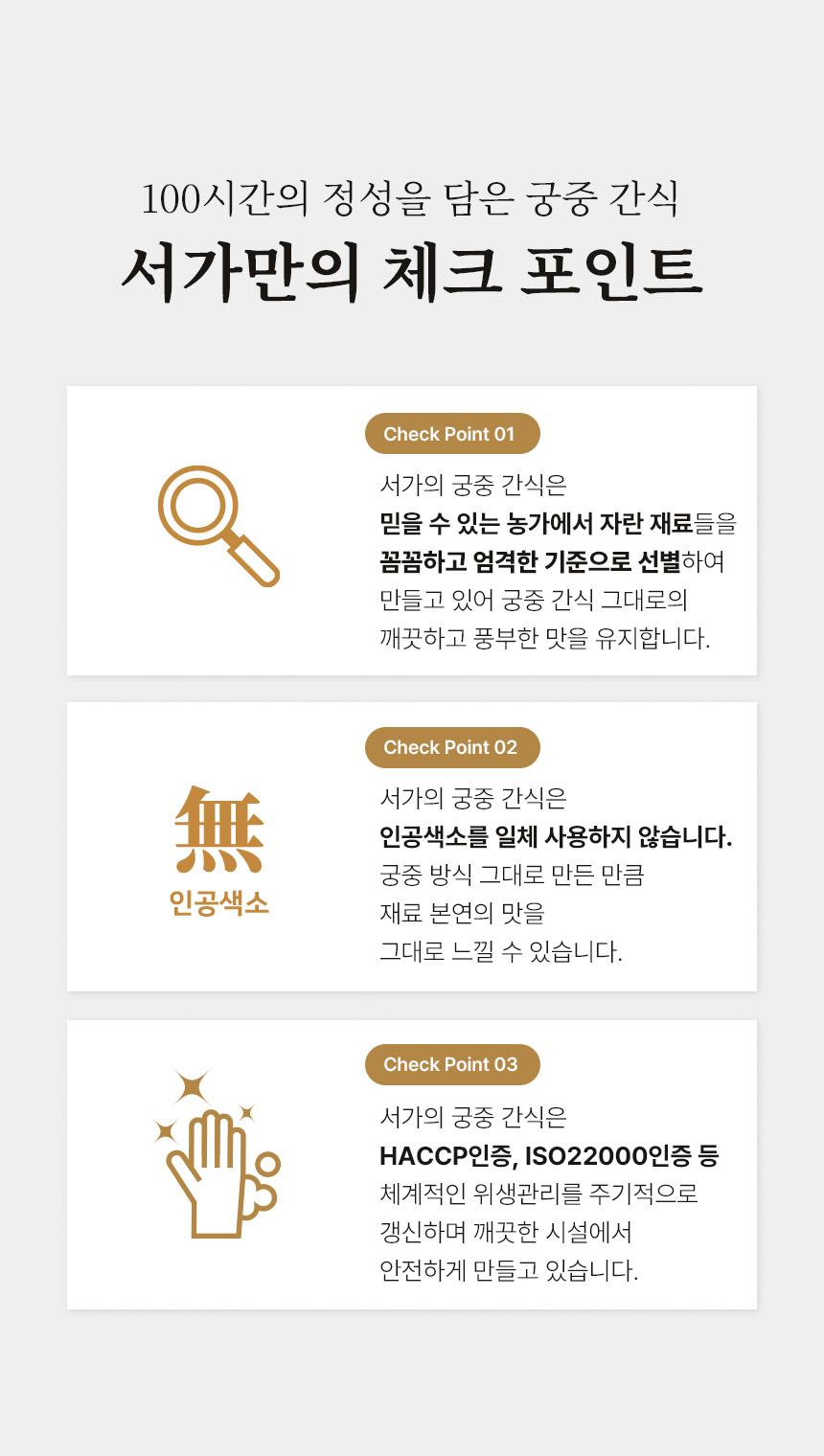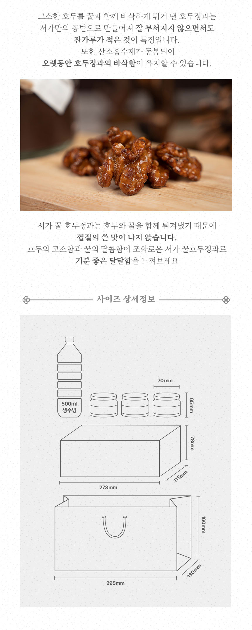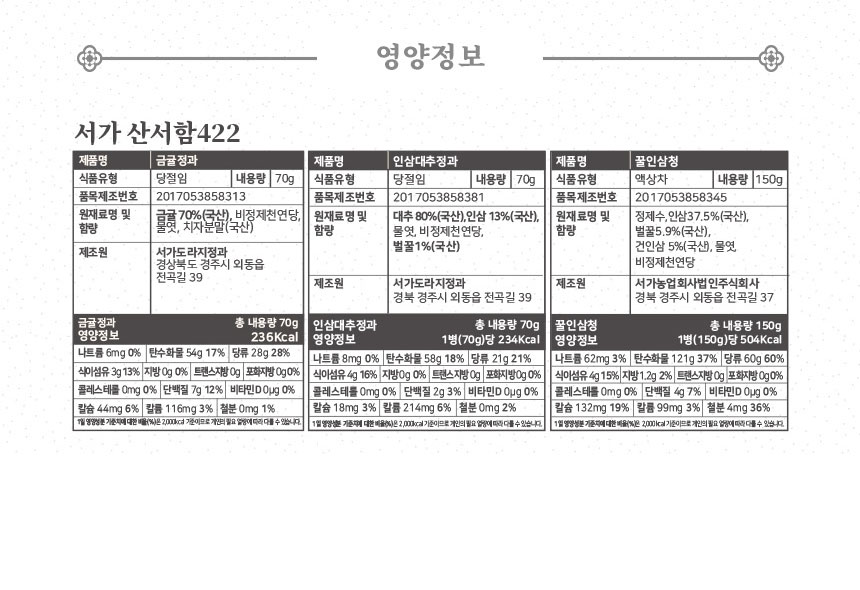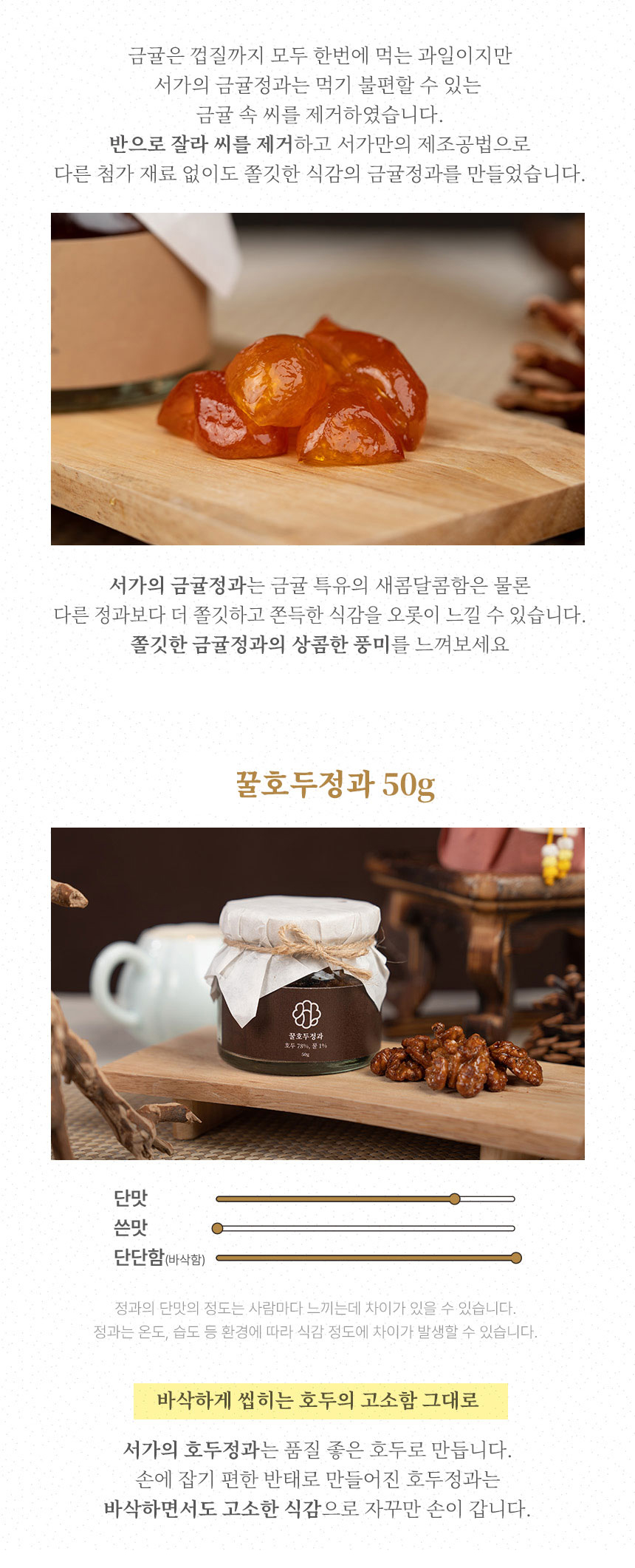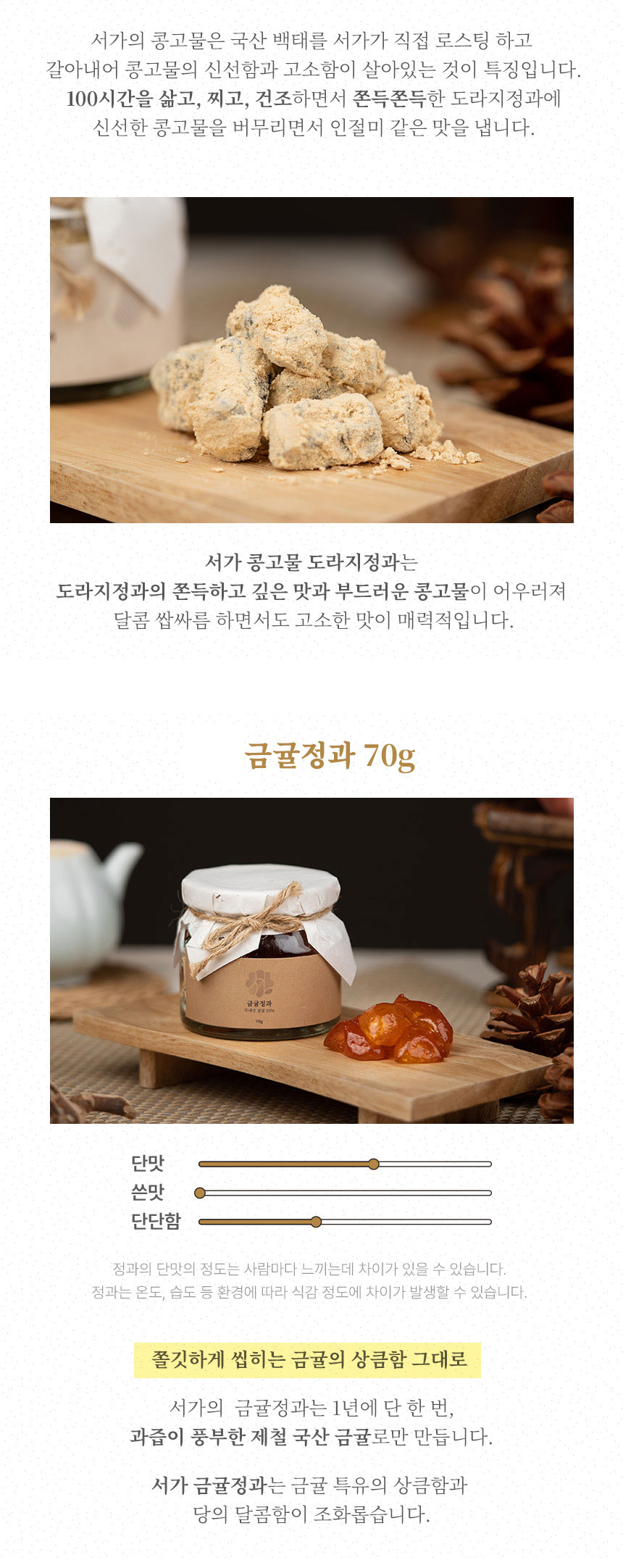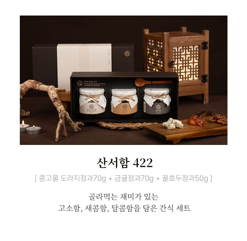 | 판매단위 | 콩고물 도라지정과 70g + 금귤정과 70g + 꿀호두정과 50g |