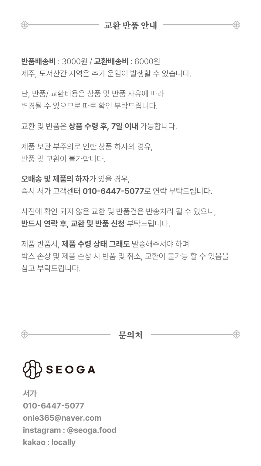 | 교환 및 반품 안내 |