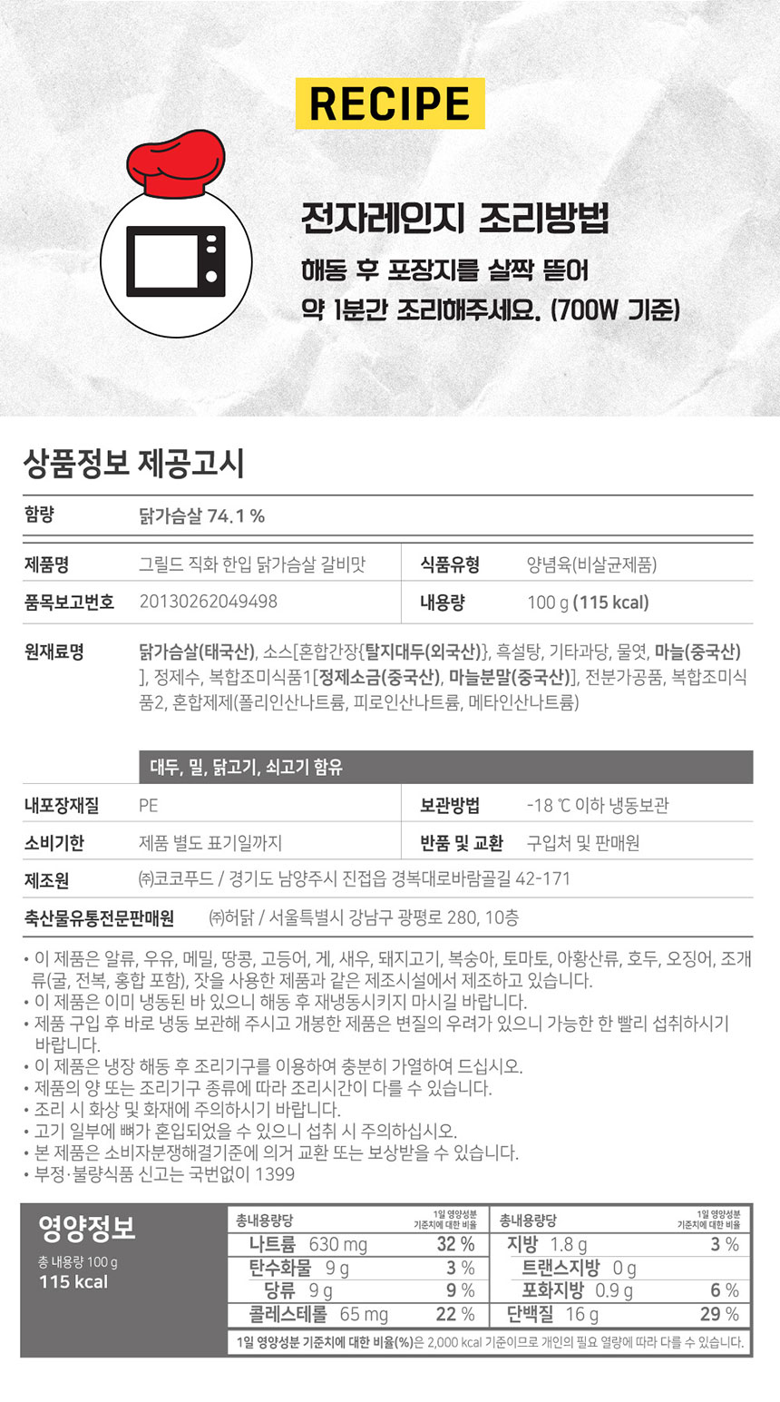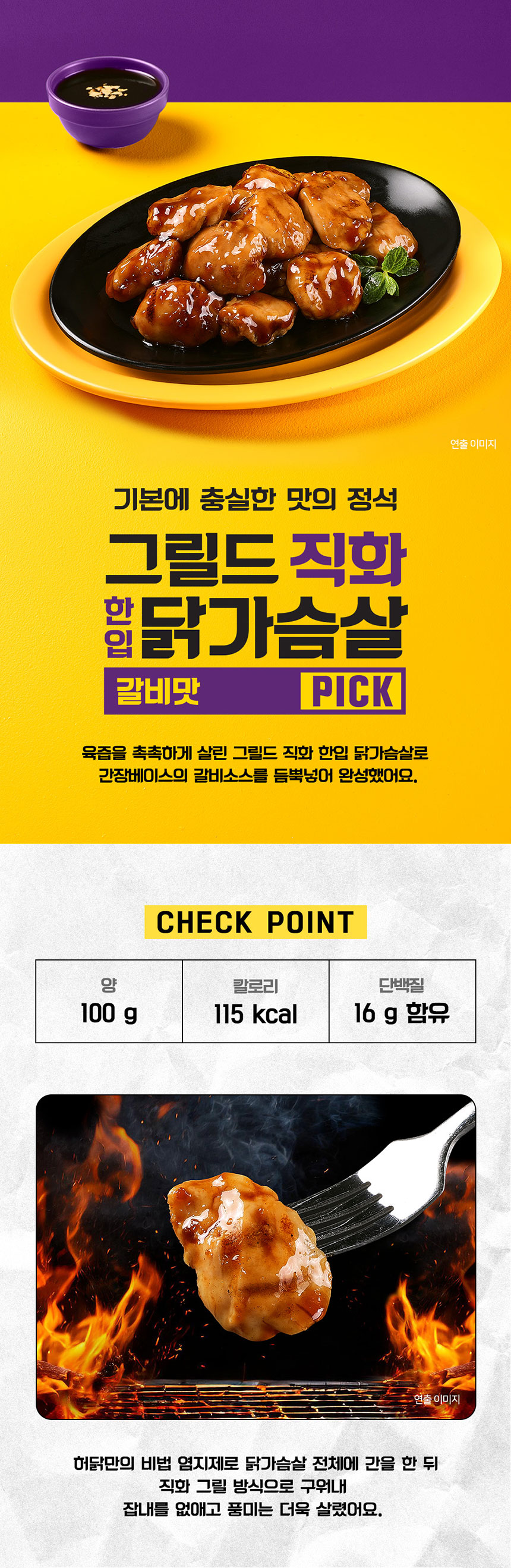[허닭] 그릴드 직화 한입 닭가슴살 갈비맛 100g
