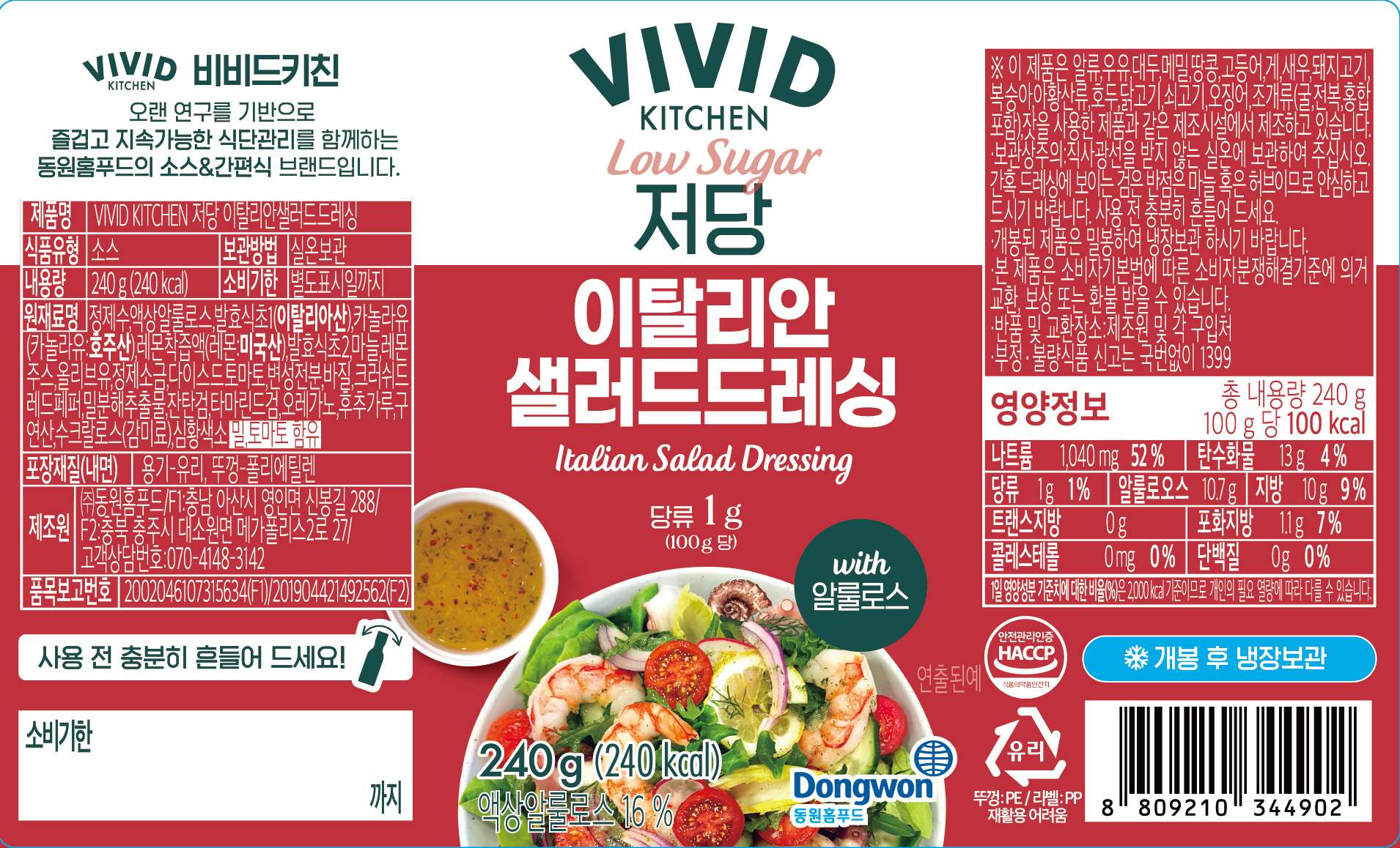 [비비드키친] 저당 이탈리안드레싱 240g