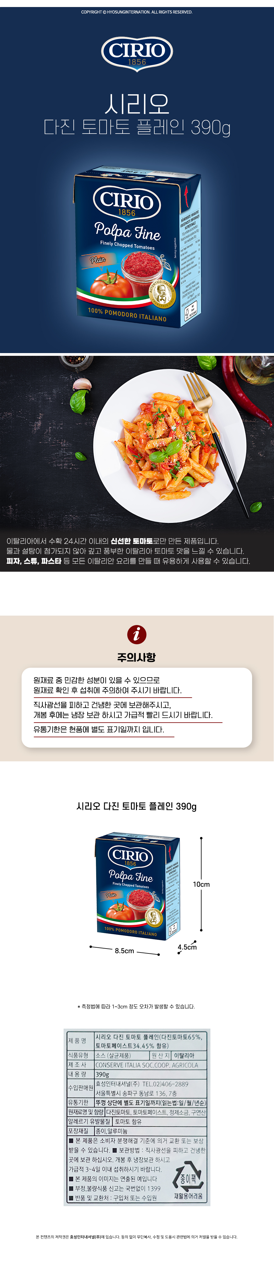 [시리오] 다진 토마토 플레인 390g