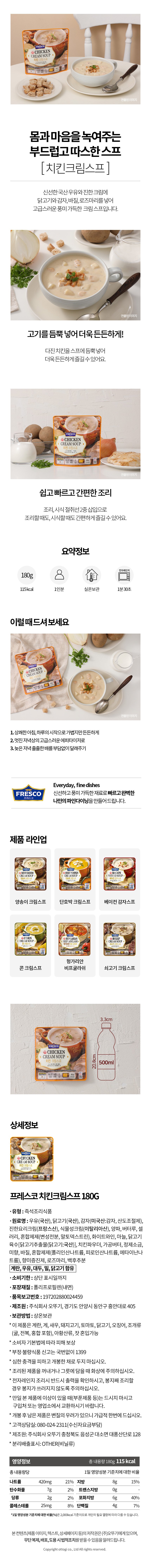 품목또는명칭 [오뚜기] 프레스코 치킨 크림스프 180g