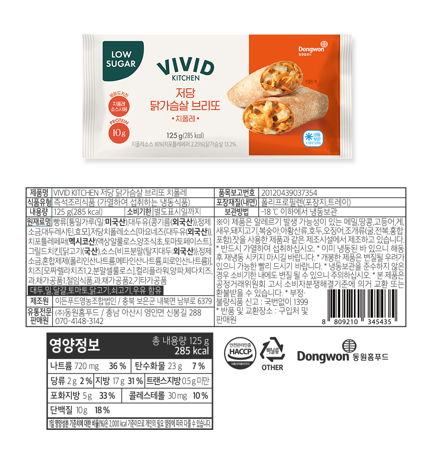 [비비드키친] 저당 닭가슴살 브리또 치폴레
