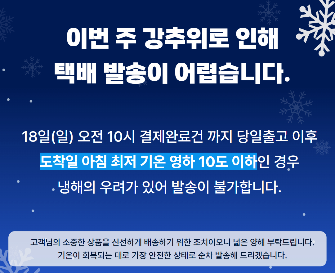 · 공휴일 전날은 출고 불가하며 당일 출고건은 다음날 배송됩니다.
