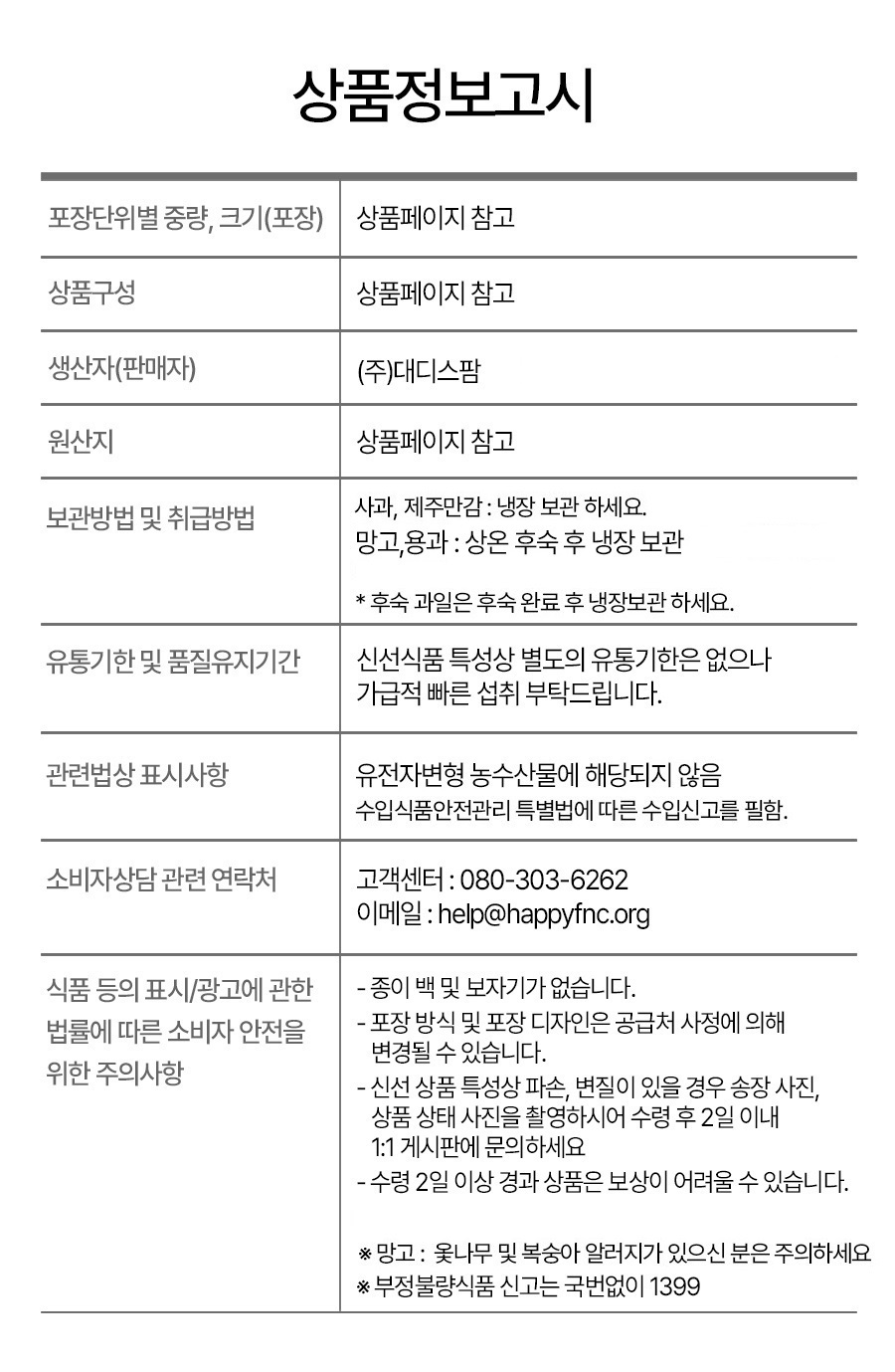 · 주의사항 - 일요일, 법정공휴일은 배송(도착)하지 않습니다. (명절 및 특수시즌 제외) - 배송지 정보와 받으시는 분의 장소 및 연락처가 불분명할 경우에는 배송이 지연될 수 있으며, 그로 인한 상품 변질에 대해서는 자연이랑이 책임지지 않습니다. |