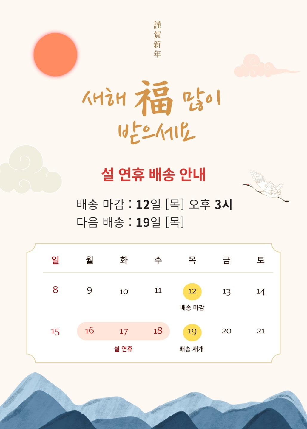 · 공휴일 전날은 출고 불가하며 당일 출고건은 다음날 배송됩니다.