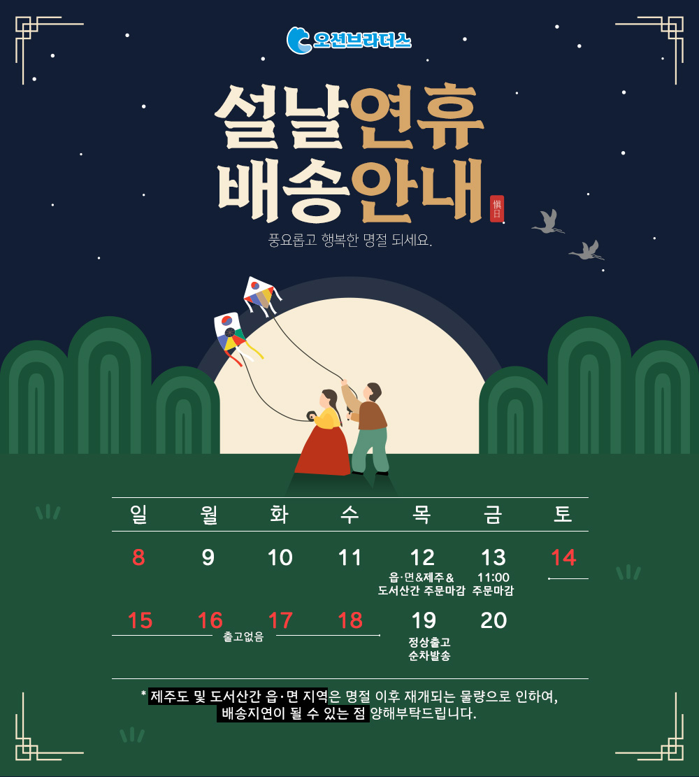 · 공휴일 전날은 출고 불가하며 당일 출고건은 다음날 배송됩니다.