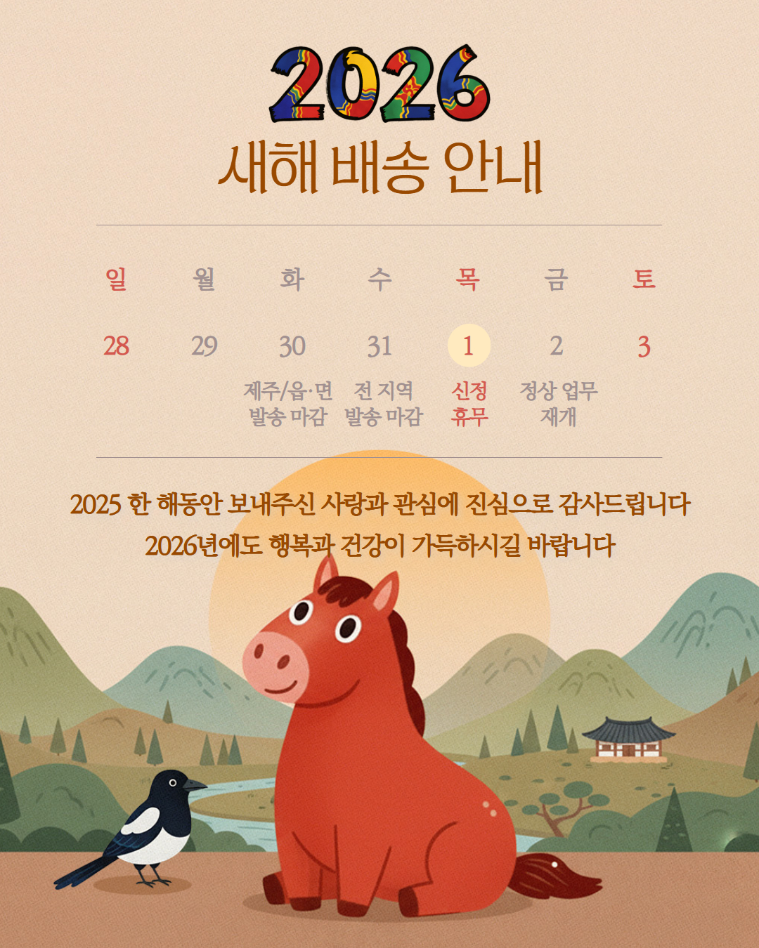 · 공휴일 전날은 출고 불가하며 당일 출고건은 다음날 배송됩니다.