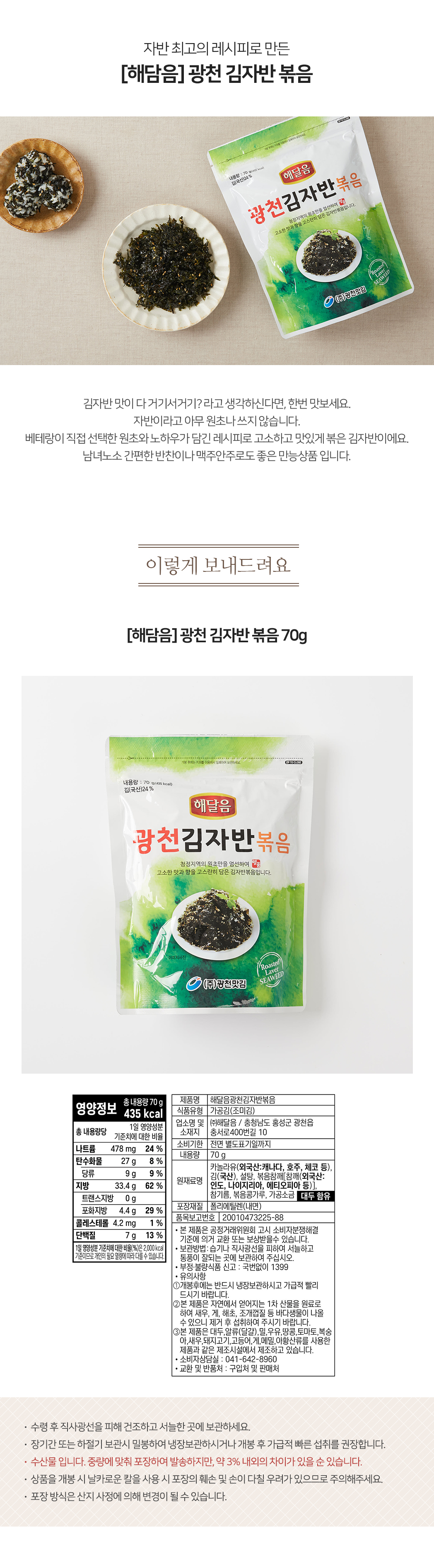 [해달음] 광천 김자반 볶음 70g