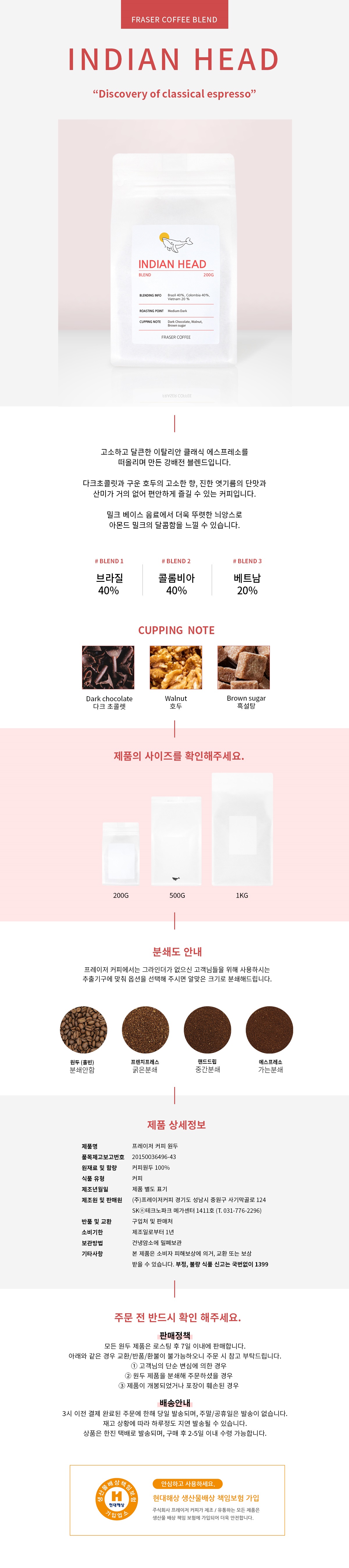 [프레이저커피] 홀빈_인디언 헤드 에스프레소 1kg