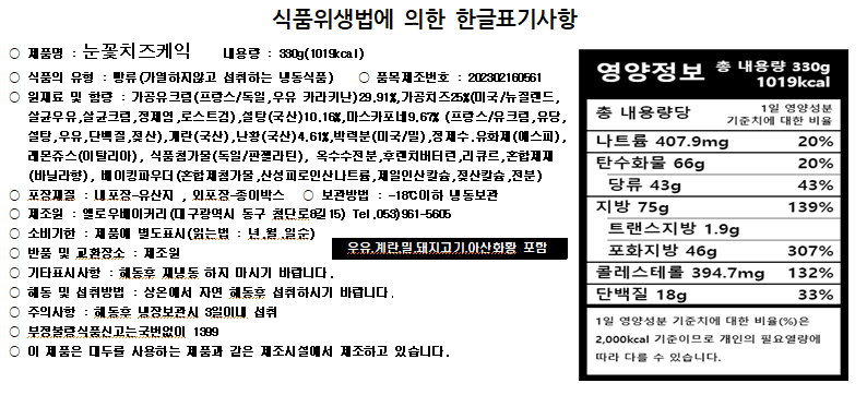 고소한 풍미의 고급 치즈 케이크| 판매가격 | 18,900원 |