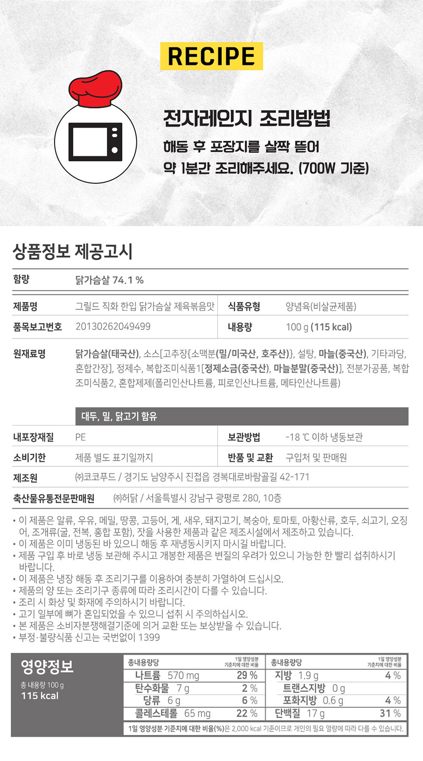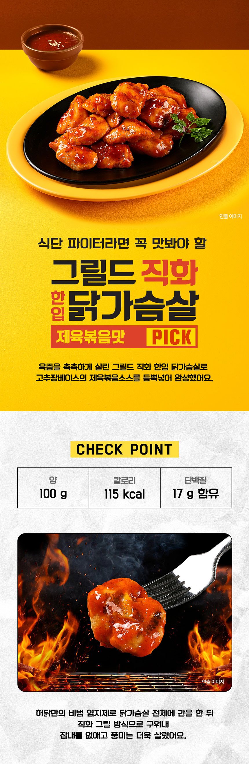 [허닭] 그릴드 직화 한입 닭가슴살 제육볶음맛 100g