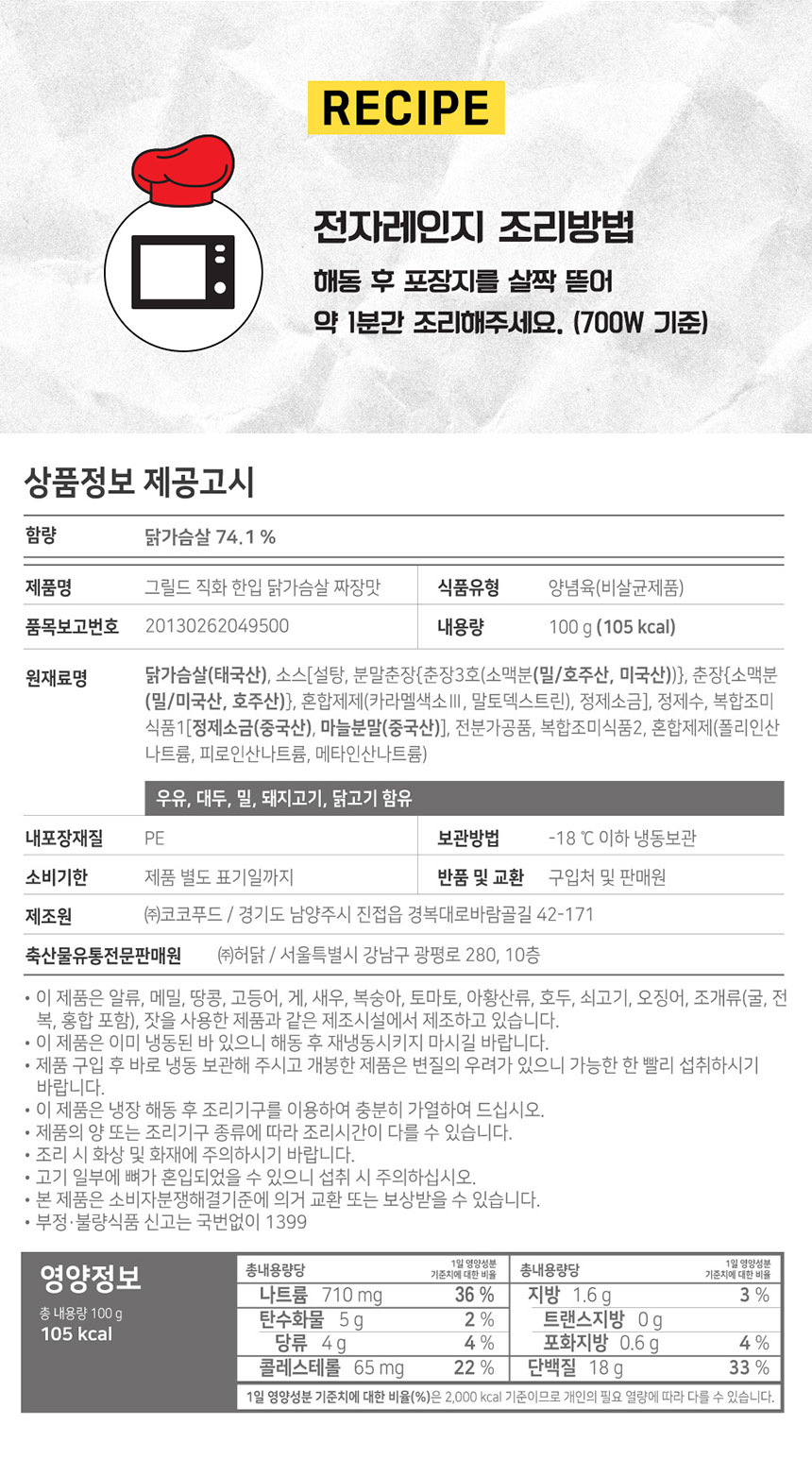 [허닭] 그릴드 직화 한입 닭가슴살 짜장맛 100g