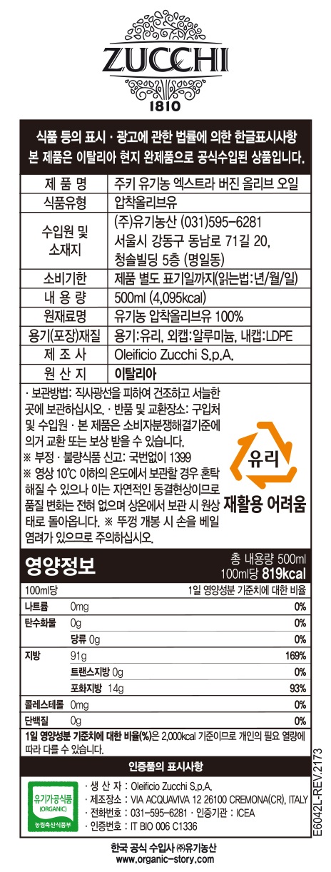 [주키] 유기농 엑스트라버진 올리브유 500ml