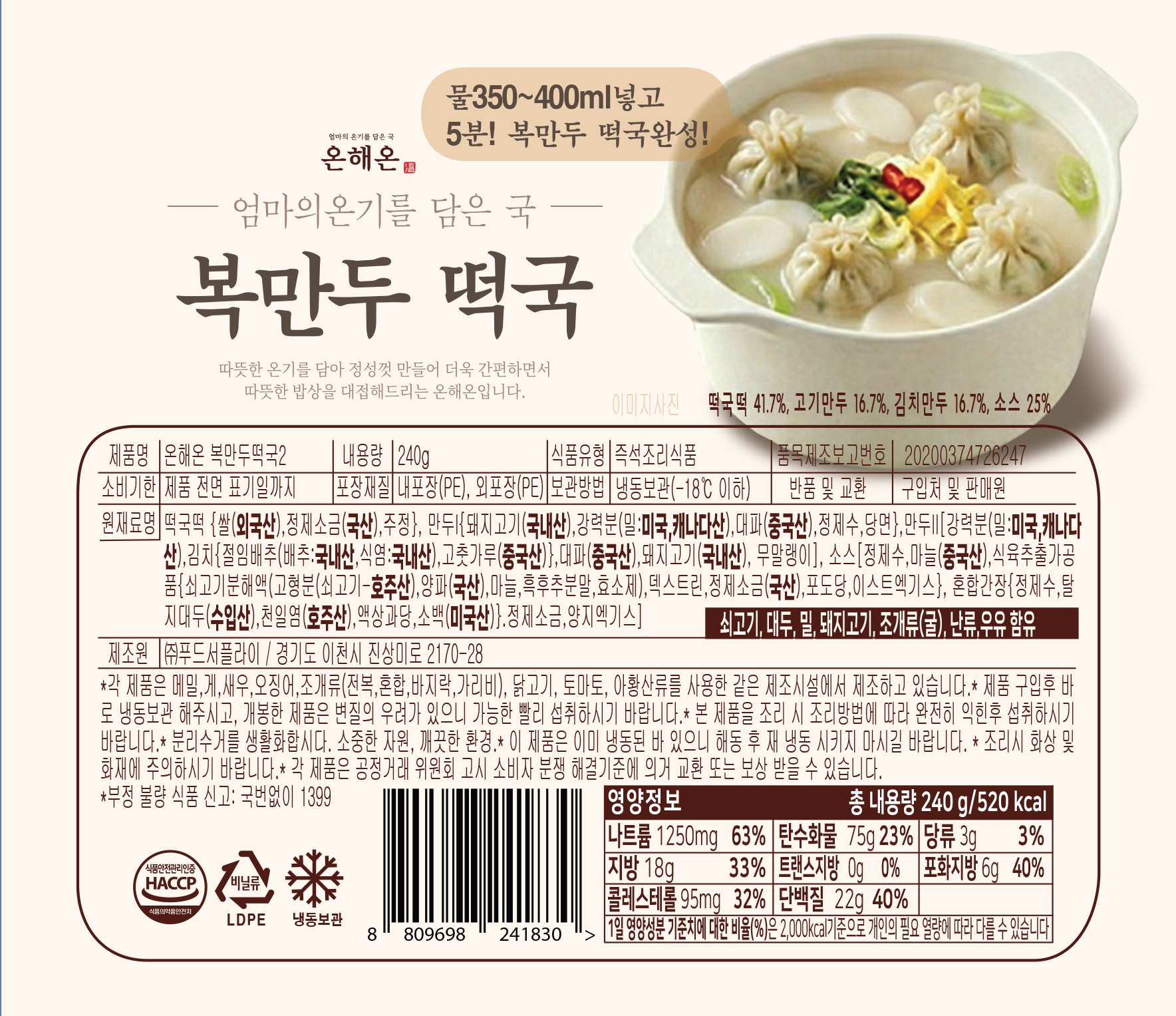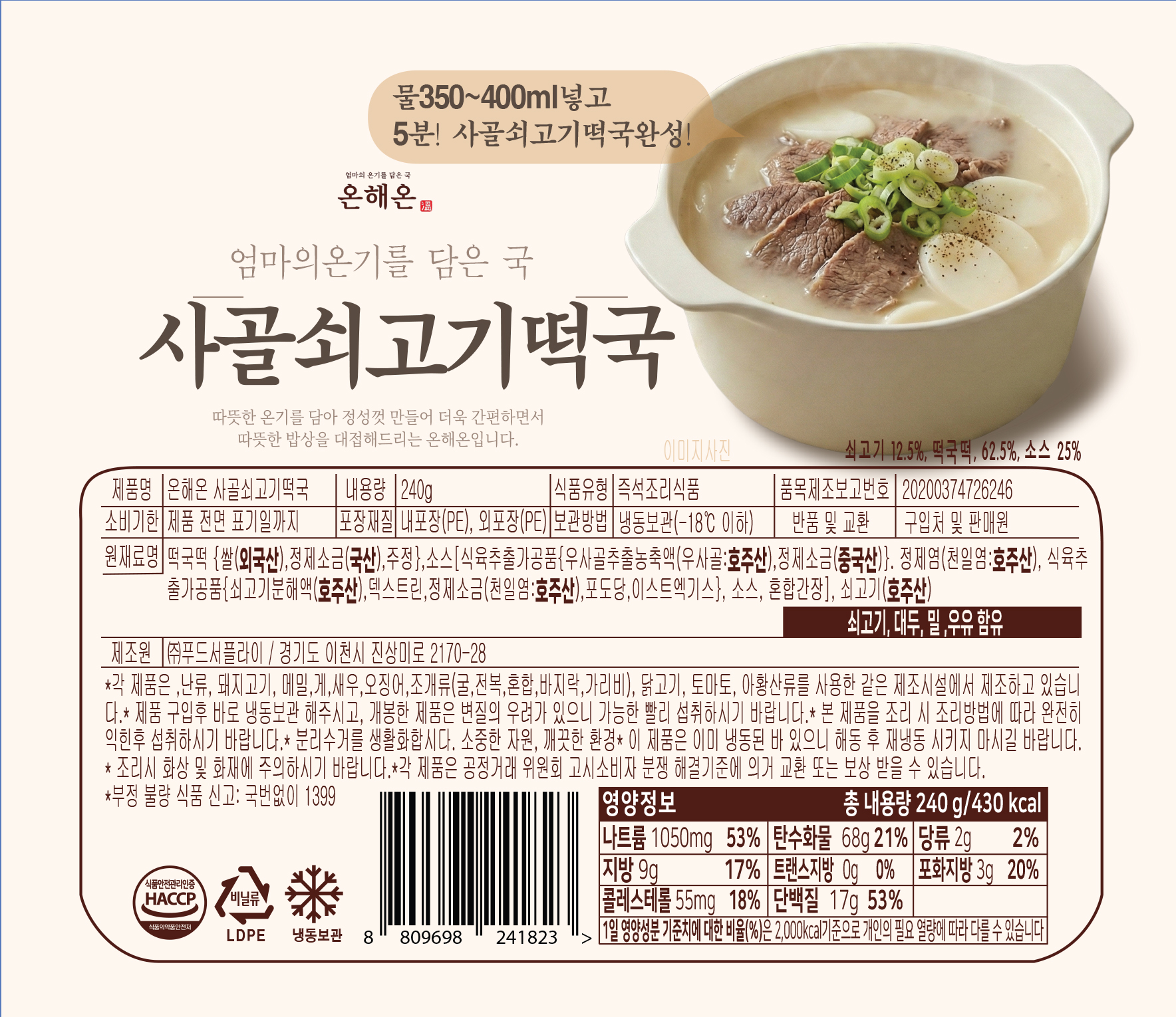 [온해온] 사골쇠고기떡국 240g