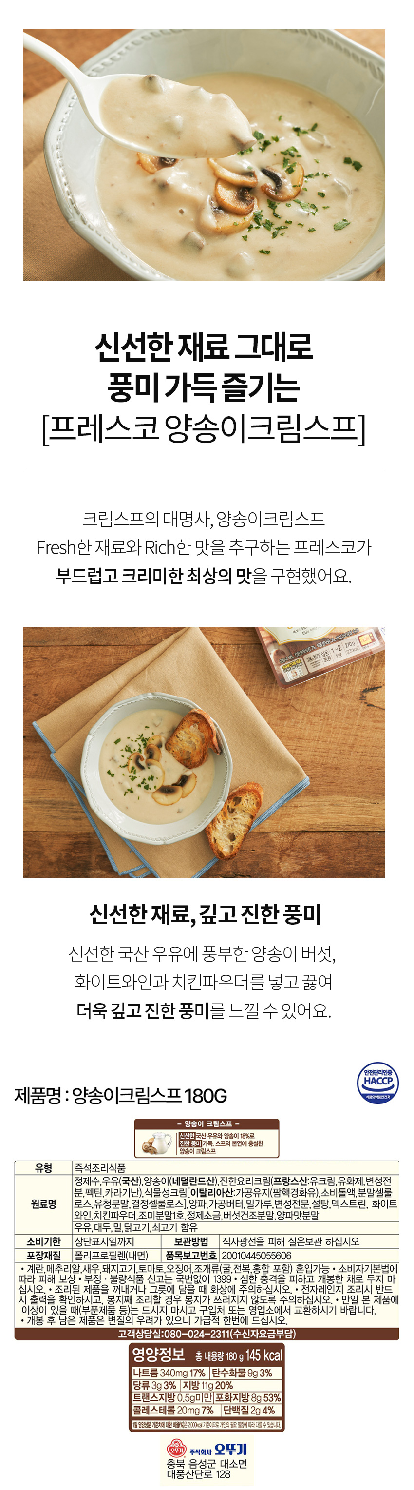 [오뚜기] 프레스코 양송이 크림스프 180g